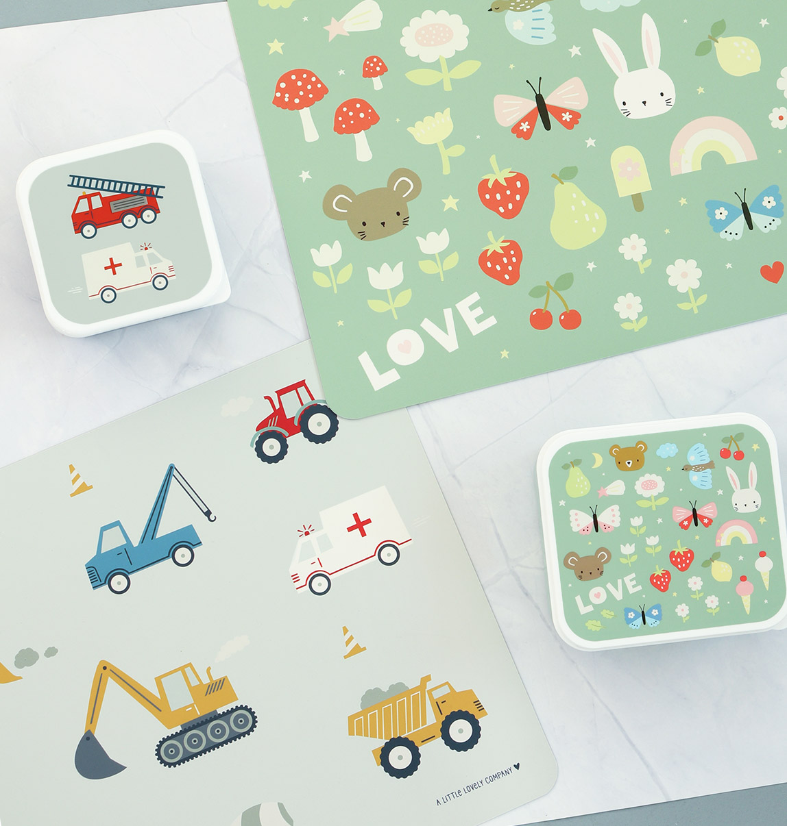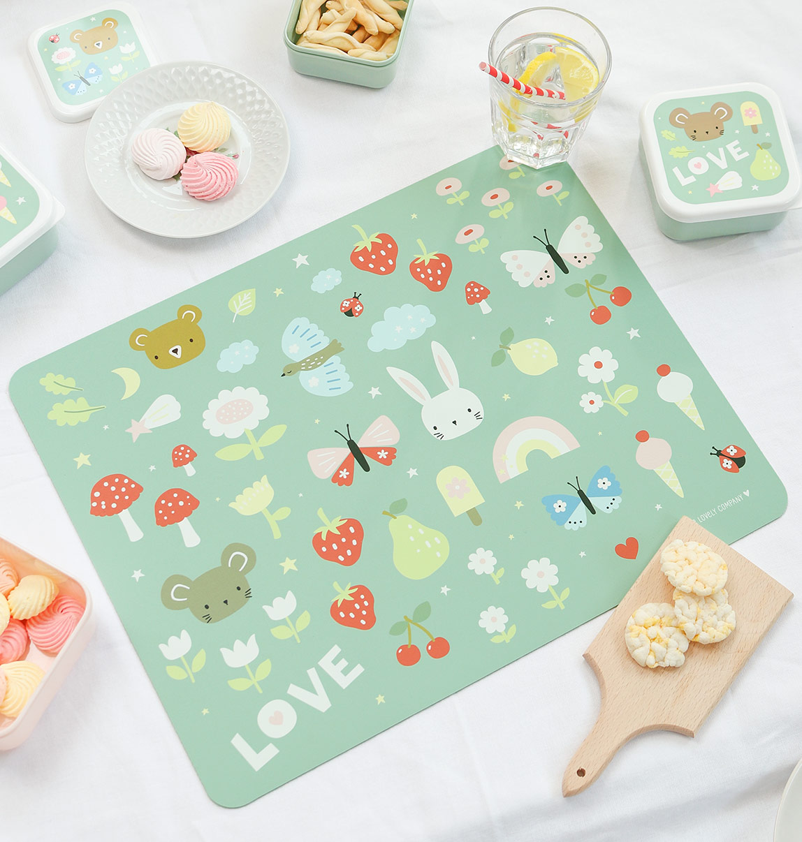 Zelené vinylové prestieranie s veselou potlačou je ideálne pre deti. Prestieranie sa ľahko udržuje v čistote a má veľkorysý rozmer. To znamená, že ponúka dostatok priestoru na pohodlné stolovanie alebo tvorenie. Vďaka protišmykovej vrstve prestieranie dobre drží na svojom mieste. Upozornenie: Potraviny s vysokým obsahom pigmentu môžu preniknúť do povrchu a spôsobiť škvrny. Rozmery: 43 × 34 × 0,2 cm Materiál: vinyl Údržba: Utierajte vlhkou handričkou, nie je vhodné do umývačky riadu ani práčky.