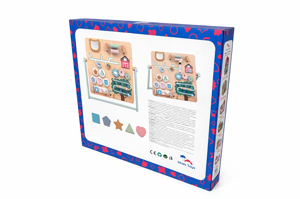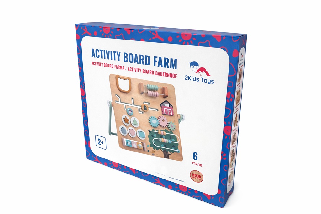 Objavte rozmanitý svet farmy prostredníctvom originálnej motorickej dosky plnej aktivít, ktorá deti nielen zabaví, ale rozvíja aj ich motorické zručnosti, sústredenie a logické myslenie. Drevená hracia doska ponúka pestrú škálu interaktívnych prvkov, ako sú otočné ozubené kolieska, posuvný a korálkový labyrint či vkladacie tvary, a motivujú deti na skúmanie, učenie aj hranie. Farebné prevedenie, prehľadné usporiadanie a kvalitné spracovanie robia z tejto hračky ideálnu vzdelávaciu pomôcku pre malých objaviteľov doma aj v škôlke. Motorická doska je opatrená praktickou stabilnou opierkou. Hlavné vlastnosti: activity board s 5 vkladacími tvarmi a množstvom aktivítzábava a učenie v jednomrozvíja jemnú motoriku a koordináciu pohybovpodporuje logické myslenie a samostatné objavovanies praktickou opierkoupekný doplnok do detskej izby či herneideálny darčekvhodné pre deti od 2 rokov