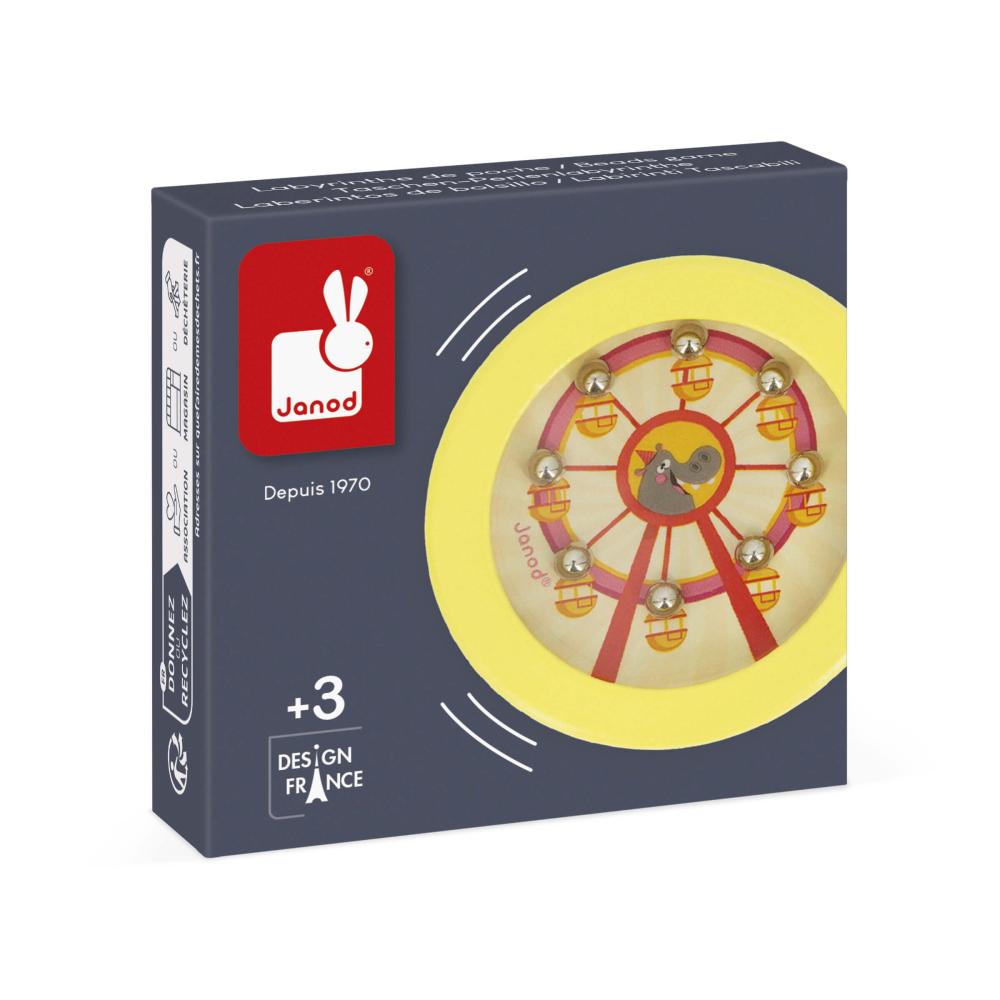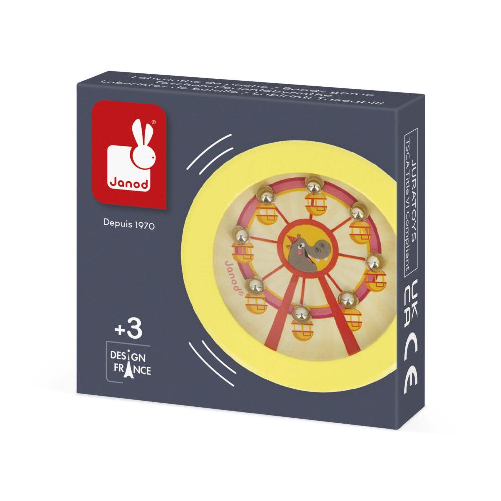 Veľká výzva v malom balení! Toto vreckové drevené bludisko je ideálne pre zábavu vášho dieťaťa, nech je kdekoľvek. Vedením a zgúľaním guličiek do jamiek táto hra stimuluje koncentráciu a zručnosť malých ručičiek. K dispozícii sú rôzne vzory: medveď, slon, krokodíl a hroch. Rozvíja trpezlivosť a koncentráciu. Zručnostná hračka vyrobená z dreva FSC™ pre deti od 3 rokov.