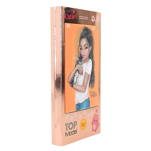 Na přední straně desek je obrázek modelky, která při náklonu zapisníku se změní obrázek.