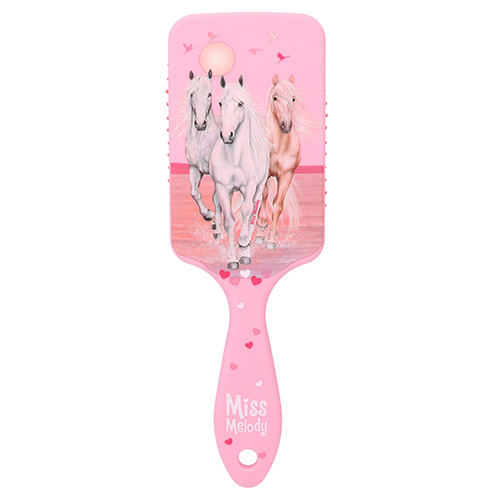 Kartáče na vlasy od Miss Melody v klasickém pádlovém tvaru mají nejen příjemně měkké štětiny, ale díky jemnému materiálovému provedení i úžasně hebké v ruce.