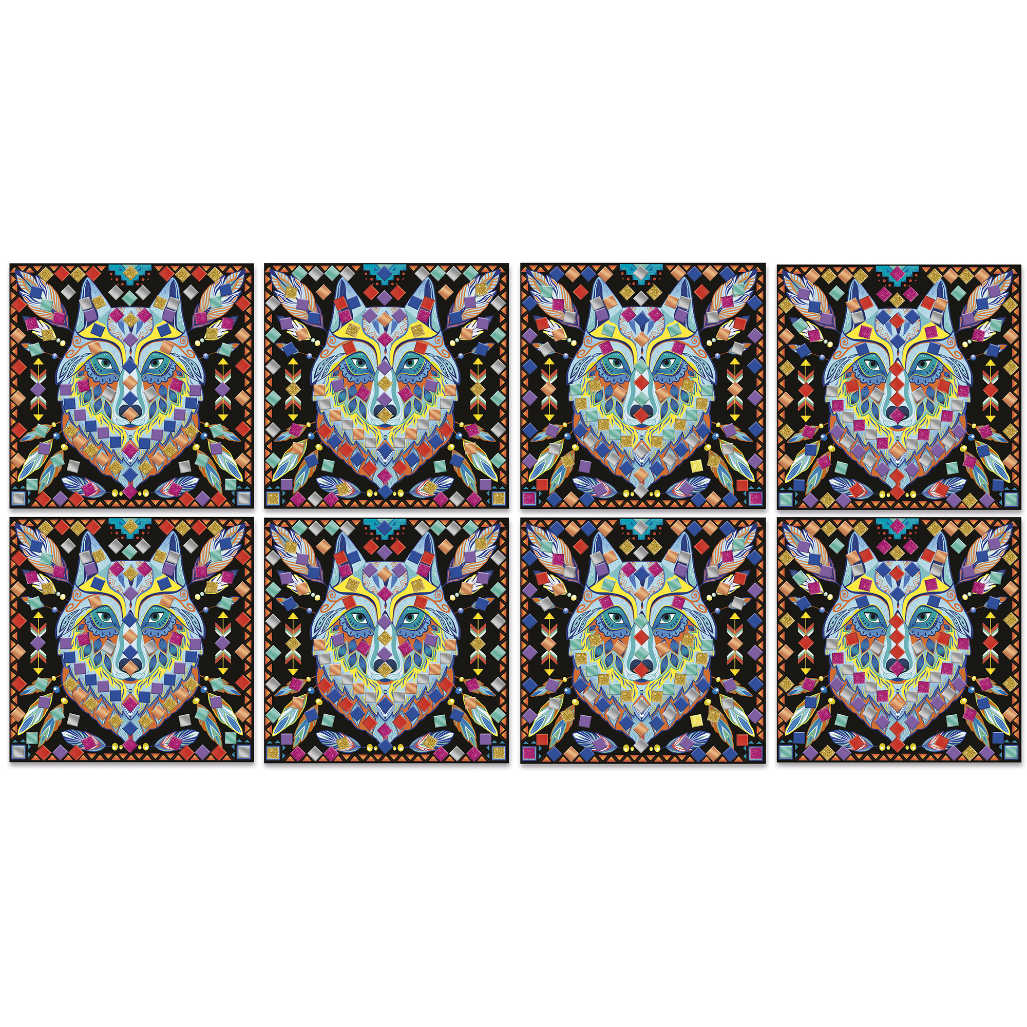 Hľadáte aktivitu, ktorá oživí vašu ďalšiu narodeninovú oslavu? Tieto mozaiky na výrobu s priateľmi sú perfektnou voľbou! Táto sada na tvorenie obsahuje 8 obrázkov, ktoré sa dajú ozdobiť mozaikami. Všetkých 8 obrázkov je identických a je možné ich prispôsobiť podľa vlastného uváženia! Táto sada obsahuje 8 dosiek (20 x 20 cm) - iba 1 dizajn, 24 malých listov mozaiky (6,5 x 6,5 cm) v 8 farbách (matná, metalická a trblietavá) a 1 brožúrku s návodom a niekoľkými príkladmi. Táto aktivita pomáha rozvíjať kreativitu a trpezlivosť. Vytvorenie každého obrázka trvá približne 30 minút a produkt je ideálny pre deti vo veku 5-8 rokov.