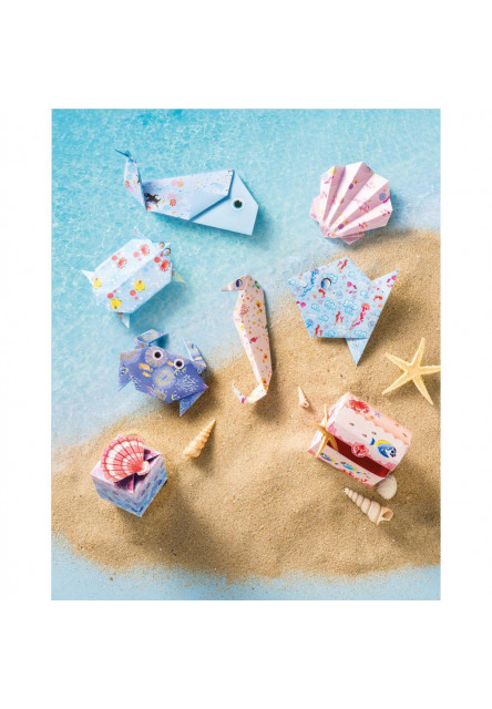 Papierové umenie sa stretáva s podmorským svetom! Táto kreatívna sada na voľný čas umožňuje deťom vo veku 7 a viac rokov zostaviť 2 truhlice a 18 zvieratiek z morského dna. Pod oceánom ležia tajomné truhlice s pokladmi a zábavné morské živočíchy! S touto kreatívnou sadou si deti rozvíjajú svoju trpezlivosť, zmysel pre detail a samozrejme kreativitu. Sada obsahuje: 18 listov, 1 list nálepiek a 2 vopred narezané listy. Vďaka brožúrke s modelmi a návodmi, ktoré sú k dispozícii, sa deti učia robiť origami krok za krokom a postupovať podľa nich, a sú tak samostatné! Origami sú vhodné pre pokojnú činnosť, ktorá im po dokončení prináša skutočnú radosť a hrdosť z dobre odvedenej práce. Jedno origami môže trvať približne 10 až 15 minút. Ponorte sa do sveta „Magického oceánu“, - kreatívne sady sú vhodné na voľný čas pre všetky deti. Téma hlbokého mora je ako stvorená na tvorivé popoludnie.Nechajte sa unášať zvukom vĺn!