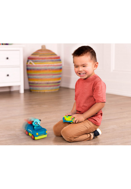Autíčko pro nejmenší řidiče a řidičky má jednoduché ovládání s pomocí dálkového ovladače se třemi tlačítky. Jedním tlačítkem se ovládá jízda dopředu, druhým tlačítkem otáčení o 360°. Po zmáčknutí řidiče v podobě pejska se ozvou 4 legrační zvuky.
