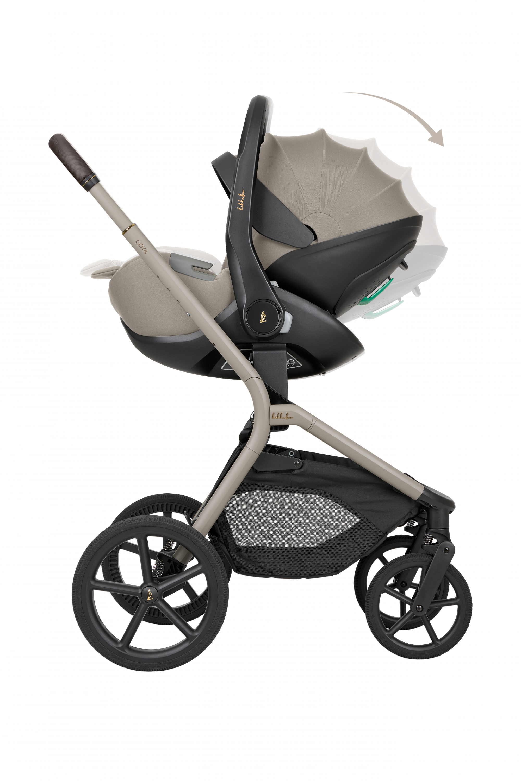 Autosedačku je možné s ponocou adaptérov umiestniť na podvozok kočíka KikkaBoo Goya Platinum pre vytvorenie kompletného cestovného systému.