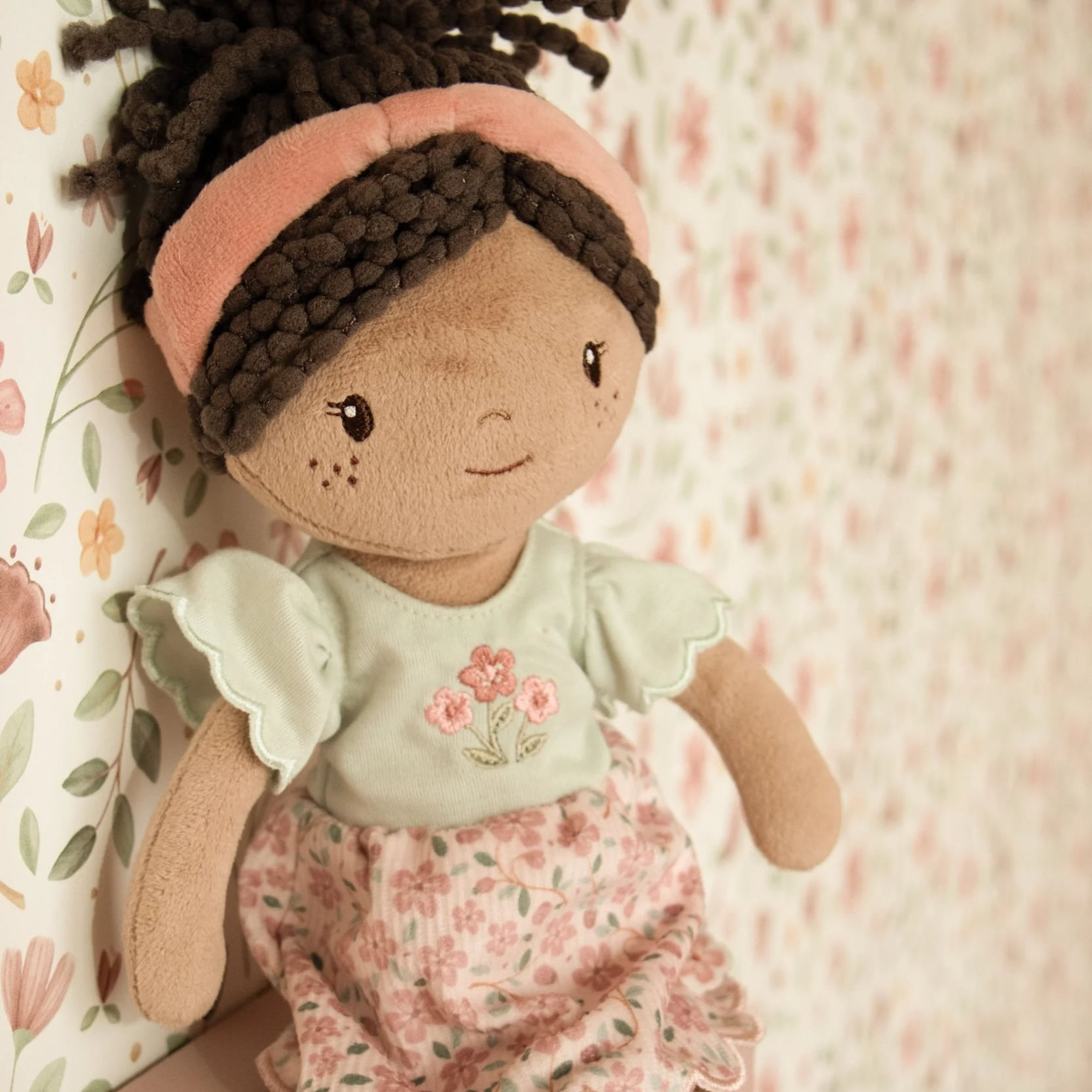 Něžná plyšová panenka Evi z měkkého jemného materiálu je oblečená do krásných květovaných šatiček. Je vhodná na hraní i mazlení a bude se s ní i krásně usínat!