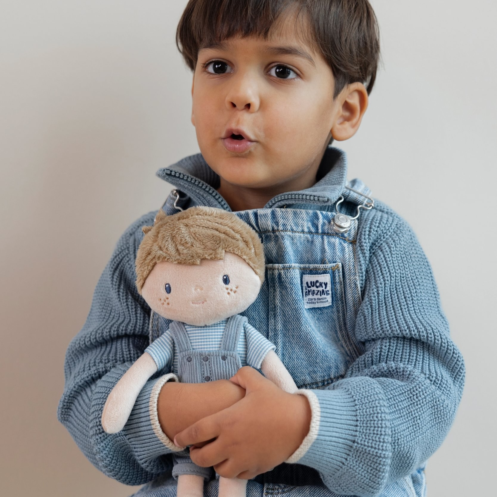 Originální plyšová panenka v podobě chlapečka Jima v manšestrových kalhotách s laclem. Panenka z měkkého jemného materiálu je ideální jako první panenka pro vaše dítě, je vhodná na hraní i mazlení a bude se s ní i krásně usínat!