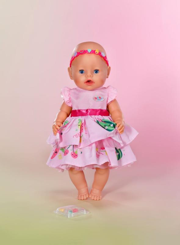 "BABY born šaty s čelenkou do vlasov a nacvakávacími ozdobami pre bábiky veľkosti 43 cm. • Viac než ...zobrazit více