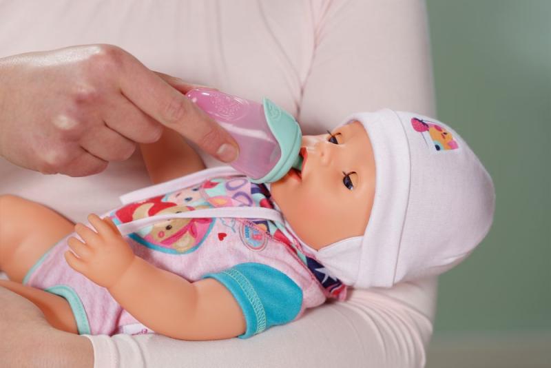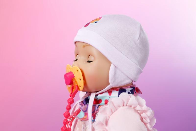 "BABY born Sada pre novorodencov obsahujúci čiapočku, plienku, hrkálku, podbradník, cumlík vhodný na ozdobenie a retiazku na cumlík. • Obsahuje fľaštičku, čiapočku, plienku, podbradník, hrkálku, cumlík a retiazku na cumlík • U niektorých bábik kúzelný cumlík pomáha zatvárať oči • Prispôsobiteľné: Cumlík je možné dozdobiť nacvakávacími ozdobami (nie sú súčasťou balenia) • Cumlík a fľaštička sú vhodné pre bábiky veľkosti 43 cm • Výrazné farby zodpovedajúce aktuálnym trendom pre svieži a štýlový vzhľad"
