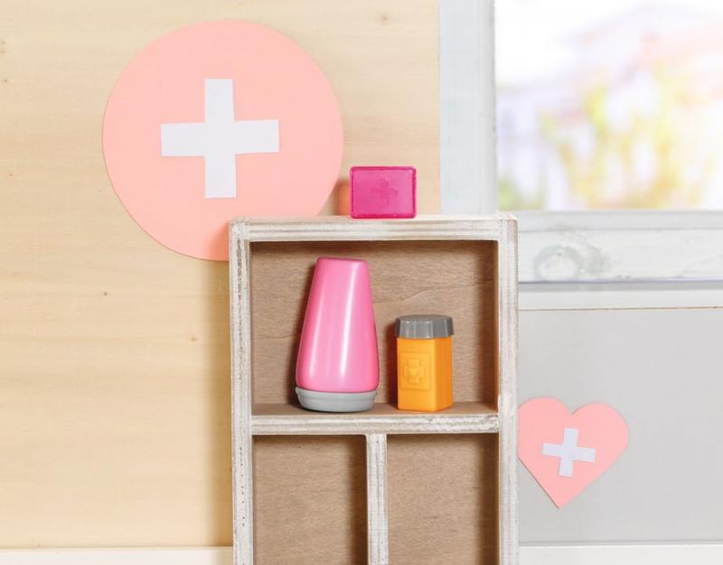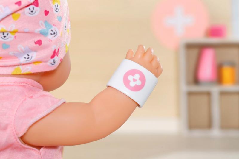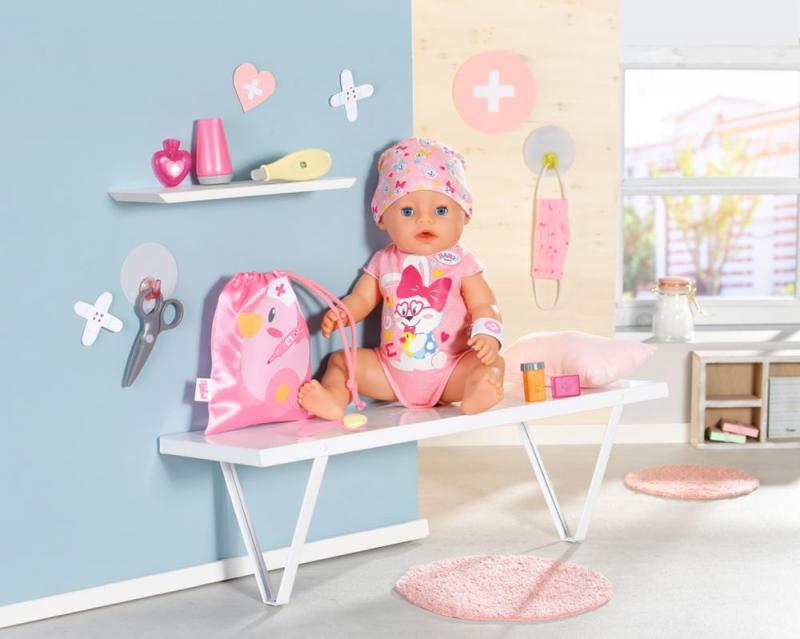 "„Au, to bolí!“ Ajáj, po tvárach BABY born sa gúľajú slzy ako hrachy. Zakopla totiž o škôlkový batôžtek svojej malej sestričky. Tá malá uličnica vždy necháva svoje veci ležať uprostred predsiene. Bratček rýchlo uteká pre sadu s prvou pomocou. Úplne profesionálne ako skutočný záchranár si hneď nasadzuje ružovú rúšku. Potom z tašky vytiahne všetko, čo potrebuje na ošetrenie rozbitého kolena bábiky BABY born. Tubu s masťou a obväz, ktorý nožnicami ešte trochu upraví. Bratček záchranár chce radšej ešte zmerať teplotu. Malá kaskadérka ju má z rozrušenia trochu zvýšenú. Napríklad by sa ohrievacia fľaša mohla zmeniť na chladiaci vankúšik. Potom bratček všetkých 9 zdravotných pomôcok schová späť do látkového vrecka, ktorý zdobí obrázok zdravotnej kačičky Berty. • Kvalitné príslušenstvo pre značkovú bábiku BABY born. • Pre radosť z nápaditej, rozmanitej a dlhotrvajúcej hry. • Vhodné pre bábiky veľkosti 36 a 43 cm. BABY born Sada prvej pomoci obsahuje 9 zdravotníckych potrieb v látkovom sáčku."