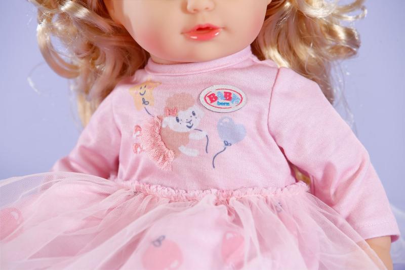 "Tento outfit pre bábiky vo svetlo ružovej farbe dodáva eleganciu každej bábike veľkosti 36 cm. Šaty s dlhými rukávmi a tylovou sukňou pôsobia obzvlášť hravo, zatiaľ čo pruhované legíny dodávajú outfitu ležérny nádych. Pastelové farby krásne podčiarkujú celý outfit. • Outfit pre bábiky v jemných pastelových farbách • Šaty s dlhými rukávmi, tylovou sukienkou a pruhovanými legínami • Vhodné pre všetky bábiky veľkosti 36 cm • Vďaka jednoduchému strihu si môžu bábiku obliecť aj tí najmenší • Hravé pastelové farby"
