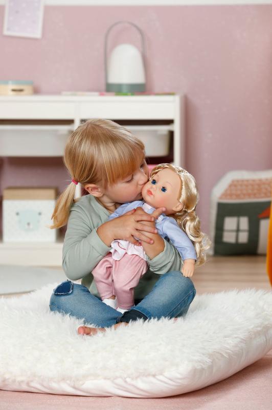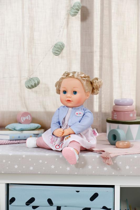 "Sophia má krásne dlhé vlasy vyrobené z kvalitného nylonu, ktoré sú ideálne pre kreatívne a štýlové účesy. Či už je to hravý vrkoč alebo elegantný cop. S jej vlasmi neexistujú žiadne hranice pre vašu fantáziu. Je to perfektná kamarátka pre malé štylistky, ktoré chcú svoju bábiku stále znova a znova česať. Keď ju po hraní uložíte, zavrie oči a vďaka mäkkému telíčku sa s ňou môžete maznať. Všetky doplnky od BABY born vo veľkosti 36 cm jej skvele sedia. • Má mäkké telíčko na maznanie • Žmurkacie oči • Kvalitné vlasy na vytváranie účesov • Oblečenie – šaty s kabátikom, legíny a topánky • Vhodné pre deti od 1 roka"