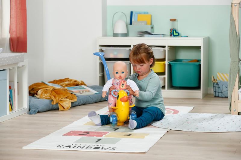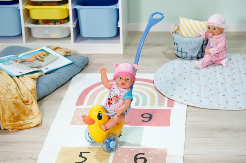 "Berta je tu! Nielenže sa prechádza v animovanom seriáli BABY born, ale teraz dorazila aj do detskej izbičky. Rovnako ako na horskej dráhe môže byť bábika v sedadle pripnutá sklopným madlom. Vďaka nastaviteľnému operadlu majú všetky bábiky BABY born na sedátku bezpečnú oporu. Pod sedátkom sa skrýva malá tajná priehradka. Berta môže byť tlačená ručne po zemi alebo pomocou odnímateľnej a výškovo nastaviteľnej vodiacej tyče. Hrkajúce kolieska pridávajú ďalší herný prvok, ktorý pri prechádzkach s Bertou zaisťuje ešte viac zábavy – ako vo vnútri, tak vonku. Emma, ??Lena a Teddy tak môžu byť vyvezení aj mimo detskej izbičky. Tak hore nasadať a ideme! • Strkadlo Berta s odnímateľnou a nastaviteľnou vodiacou tyčou • Hrkajúce kolieska • Vďaka nastaviteľnému operadlu a upevňovaciemu madlu je vhodná pre všetky bábiky BABY born • Pod sedátkom je tajná priehradka na malé poklady • Kvalitný doplnok pre radosť z nápaditej, rozmanitej a dlhotrvajúcej hry"