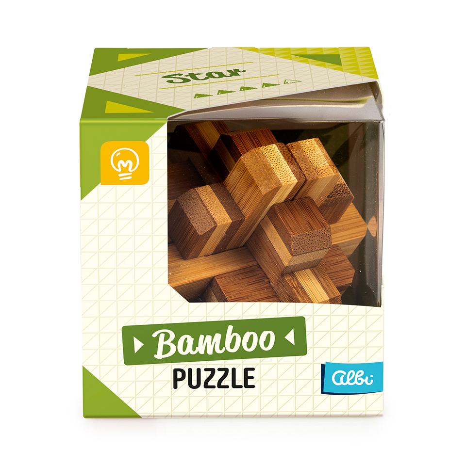 Precvičte svoju zručnosť, pozornosť a jemnú motoriku s hlavolamami z edície Mozgovňa. Bambusové hlavolamy určite urobia radosť vašim blízkym aj vám. Na výber máte zo 6 rôznych druhov vyrobených z prírodného bambusu. Potrápte si mozgové závity! Návod na zloženie hlavolamov nájdete vo vnútri balenia. Rozmery balenia: 8,2 cm × 8,2 cm × 9 cm
