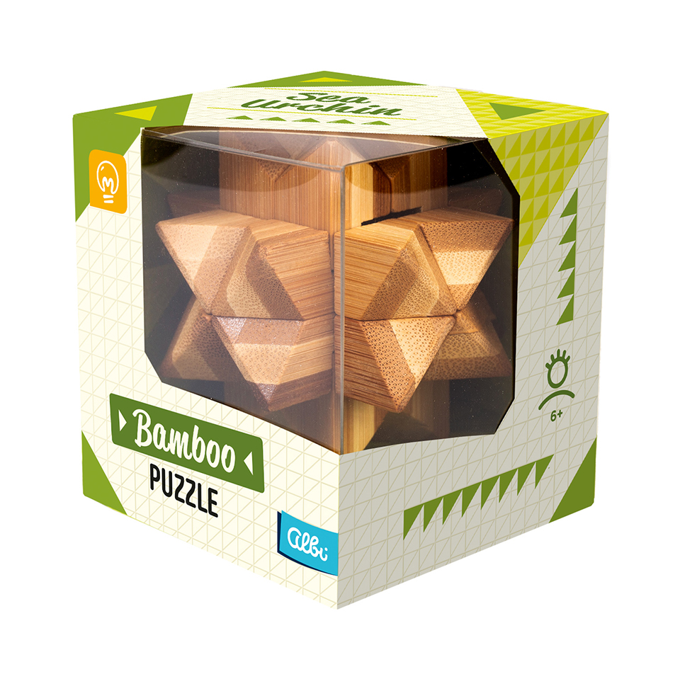Precvičte svoju zručnosť, pozornosť a jemnú motoriku s hlavolamami z edície Mozgovňa. Bambusové hlavolamy určite urobia radosť vašim blízkym aj vám. Na výber máte zo 6 rôznych druhov vyrobených z prírodného bambusu. Potrápte si mozgové závity! Návod na zloženie hlavolamov nájdete vo vnútri balenia. Rozmery balenia: 8,2 cm × 8,2 cm × 9 cm