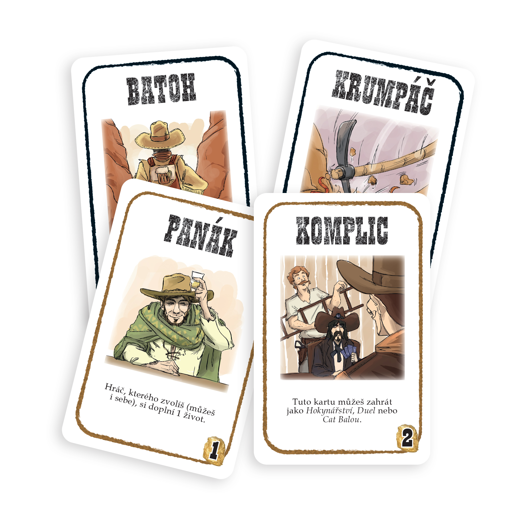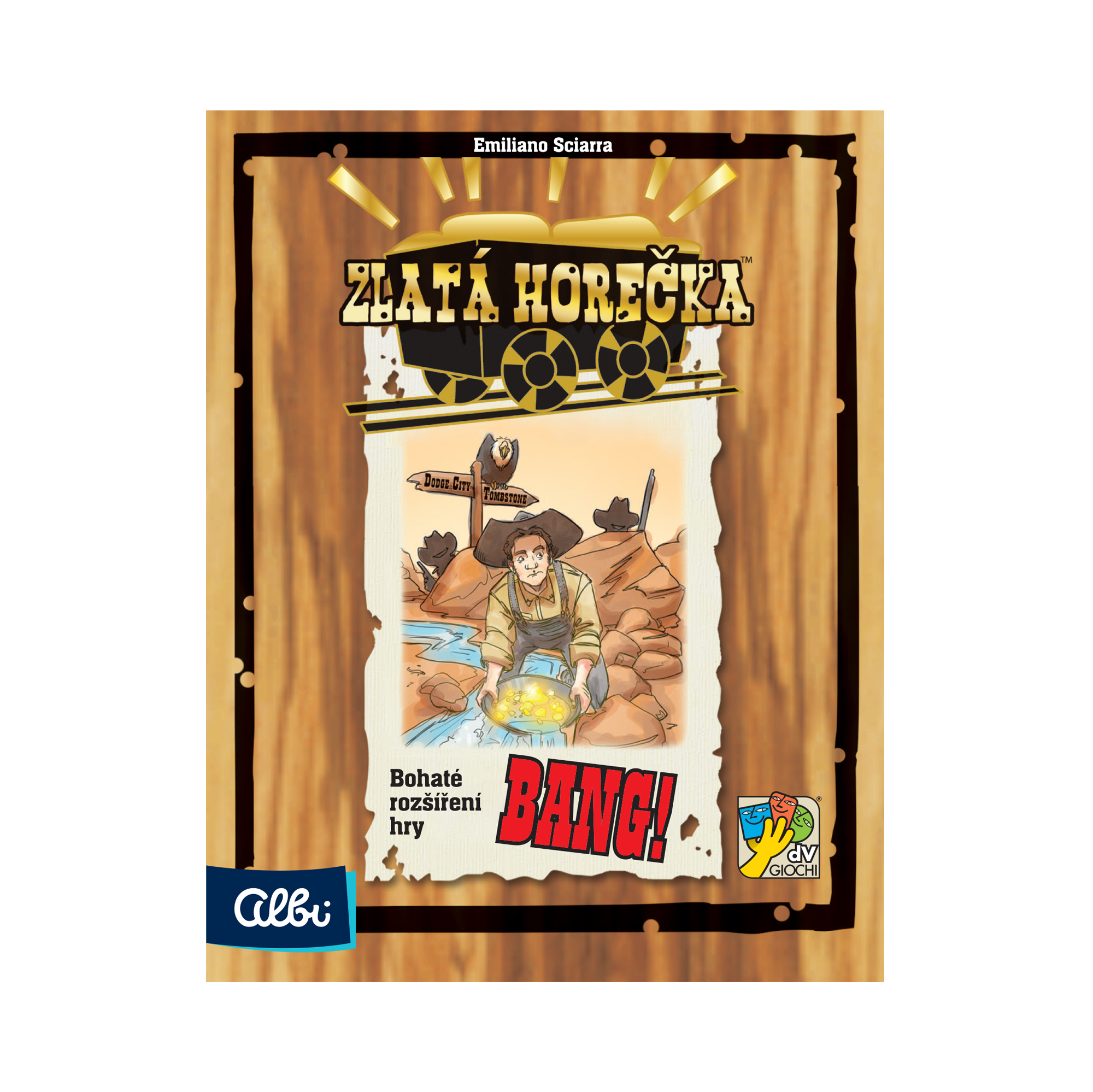 Bang! Zlatá horúčka Bohaté rozšírenie hry Bang! Nastala zlatá horúčka! Najrýchlejší pištoľníci môžu v hre vyryžovať množstvo zlata. Kto má zlato, môže si nakúpiť užitočné vybavenie, ktoré môže pomôcť pri prestrelkách. Treba sa však mať na pozore pred tieňovými pištoľníkmi... Majú jediný cieľ, a to dostať ťa z hry. Poponáhľaj sa, nech si u zlatonosnej riečky prvý! Zlatá horúčka je rozšírenie, ku ktorému potrebujete základnú hru Bang! A môžete ho ľubovoľne kombinovať s ostatnými rozšíreniami hry Bang!. Obsah: karta roly tieňového odpadlíka, 8 kariet postáv, 24 kariet vybavenia, 30 zlatých balvanov (plastových) a pravidlá hry v češtine a slovenčine.