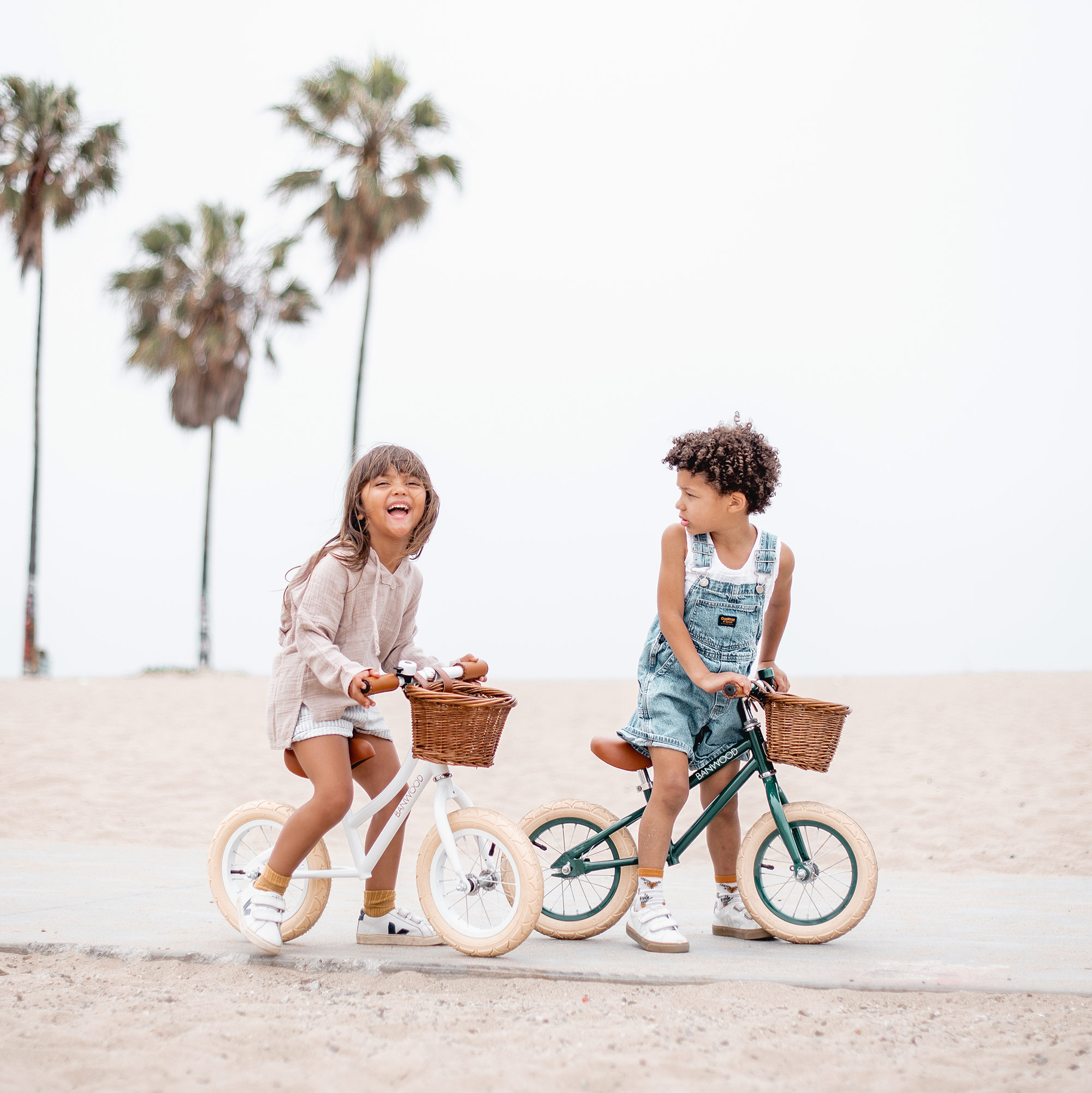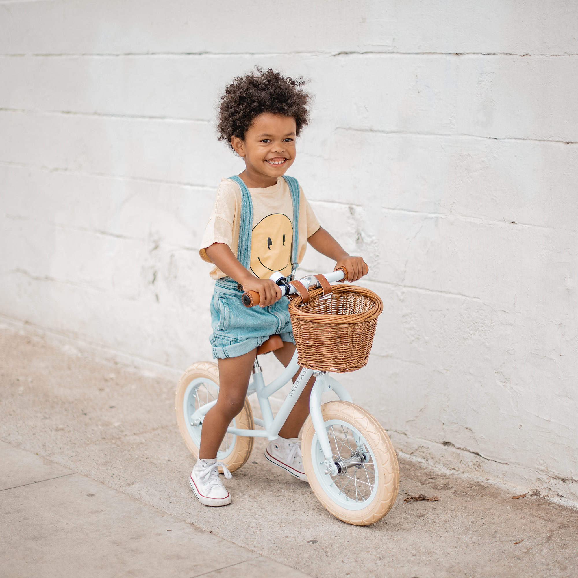Víziou Banwood je pozitívne ovplyvňovať aktívny životný štýl detí od útleho veku. Banwood ponúka štýlové produkty v nadčasovom minimalistickom dizajne a vysokej kvalite, ktoré pomáhajú rozvíjať osobnosť detí a vytvárať spomienky na detstvo plné radosti. Milujeme spôsob, akým sa deti hrajú!  Pre koho je Banwood odrážadlo? Banwood odrážadlo je určené pre deti od 3 rokov. Vďaka nastaviteľnej výške sedadla a riadidiel rastie odrážadlo s dieťaťom až do momentu, kedy je pripravené presedlať na bicykel.  Nezastaviteľní jazdci plní sebavedomia! Banwood odrážadlo je ideálny spôsob ako vaše dieťa prirodzene naučiť balansu potrebnému pri bicyklovaní. Dáva mu voľnosť pohybu pri samostatnej jazde, rozvíja jeho hrubú motoriku a priestorovú orientáciu. Vďaka tomu, že dieťa využíva na pohyb a balansovanie vlastné telo, získava tak sebavedomie nad kontrolou riadenia, pričom má stále istotu vďaka nohám na zemi. Prechod na klasický bicykel tak bude ľahký a bez potreby použitia pomocných koliesok.  Nadčasový škandinávsky dizajn v klasickom „vintage“ štýle, bez kompromisov na kvalite a bezpečnosti. Každodennú radosť z pohodlnej jazdy si deti užijú vďaka prvotriednym detailom, ako sú pohodlné ergonomické sedadlo, odľahčený oceľový rám, 12-palcové kolesá a rukoväte z vegánskej kože. Samozrejme nemôže chýbať ikonický prútený košík, aby si váš malý prieskumník mal kam odložiť všetko potrebné na výlete za ďalším dobrodružstvom.  Doporučený vek od 3 rokov. Zvonček a prútený košík v balení. Pohodlné ergonomické výškovo nastaviteľné sedadlo s poťahom z vegánskej kože. Štýlové rukoväte z vegánskej kože. Odľahčený oceľový rám v dvoch dizajnoch - s rovnou alebo so zakrivenou hornou rámovou tyčou. Nastaviteľná výška sedadla odrážadla so zakriveným rámom: od 37 do 44 cm. Nastaviteľná výška sedadla odrážadla s rovným rámom: od 44 do 50 cm. Nastaviteľná výška riadidiel od 50 do 59 cm. 12-palcové kolesá. Maximálna nosnosť 25 kg. Váha 4,5 kg.
