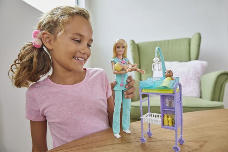 Objavte svet zábavy pri učení s hernými setmi Barbie® Povolanie! Každý herný set premení pracovný priestor na miesto na hranie, ktoré obsahuje bábiku, s prácou súvisiace prostredie a doplnky, vďaka ktorým môžu mladí pracanti preskúmať svoje budúce povolanie. Bábika Barbie® rada pomáha a stará sa o druhých. Deti si môžu vybrať z obľúbených povolaní, ktoré vystihujú toto zmýšľanie – od povolania učiteľky výtvarnej výchovy v triede až po detskú lekárku v ordinácii a ďalšie. Každý herný set obsahuje bábiku Barbie®, menšiu bábiku alebo dve - napríklad bábiku študenta, batoľatá alebo dvojčatá detských pacientov - a zábavné prvky pre učenie a príležitosť k hre. Predávajú sa samostatne podľa aktuálnej ponuky. Bábiky nemôžu stáť samostatne. Farby a vzhľad výrobku sa môžu líšiť.