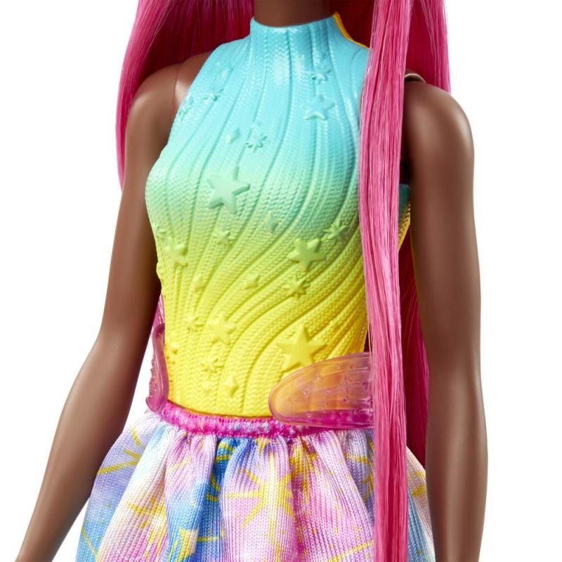 Táto rozprávková bábika Barbie® má extra dlhé a farebné vlasy v purpurovej farbe! Deti si môžu svoju jednorožčiu bábiku upraviť pomocou priložených vlasových doplnkov, potom ich znovu rozčesať a opakovane sa s nimi hrať do nekonečna. Rozprávkové prvky, ako sú roh jednorožca a čelenka s ušami, dodávajú tejto bábike Barbie® mimoriadny šmrnc. Bábika nevie samostatne stáť. Farby a vzhľad výrobku sa môžu líšiť.
