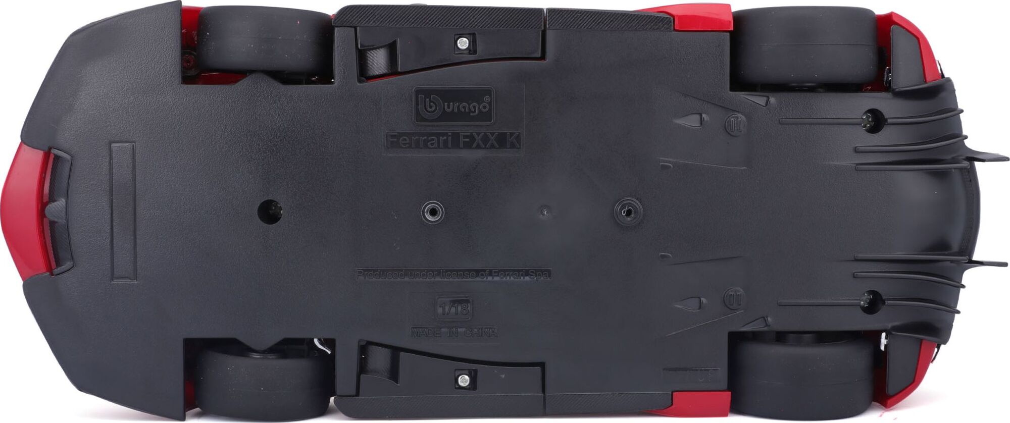 Bburago 1:18 Ferrari TOP FXX-K, výrobca Bburago. Špičkový model auta LaFerrari v mierke 1:18. Model má otváracie dvere a obe kapoty Volant je funkčný Zavesenie všetkých kolies Detailné vypracovanie interiéru Prvotriedna kvalita farbenia Detailné vypracovanie podvozku so samostaným výfukovým systémom Vysoká detailnosť kolies a emblémov Špeciálna zberateľská krabička Pre deti od 3 rokov
