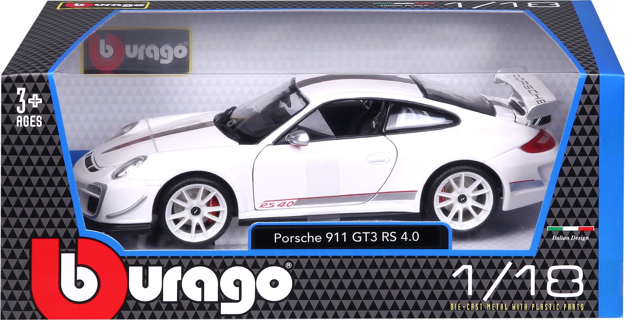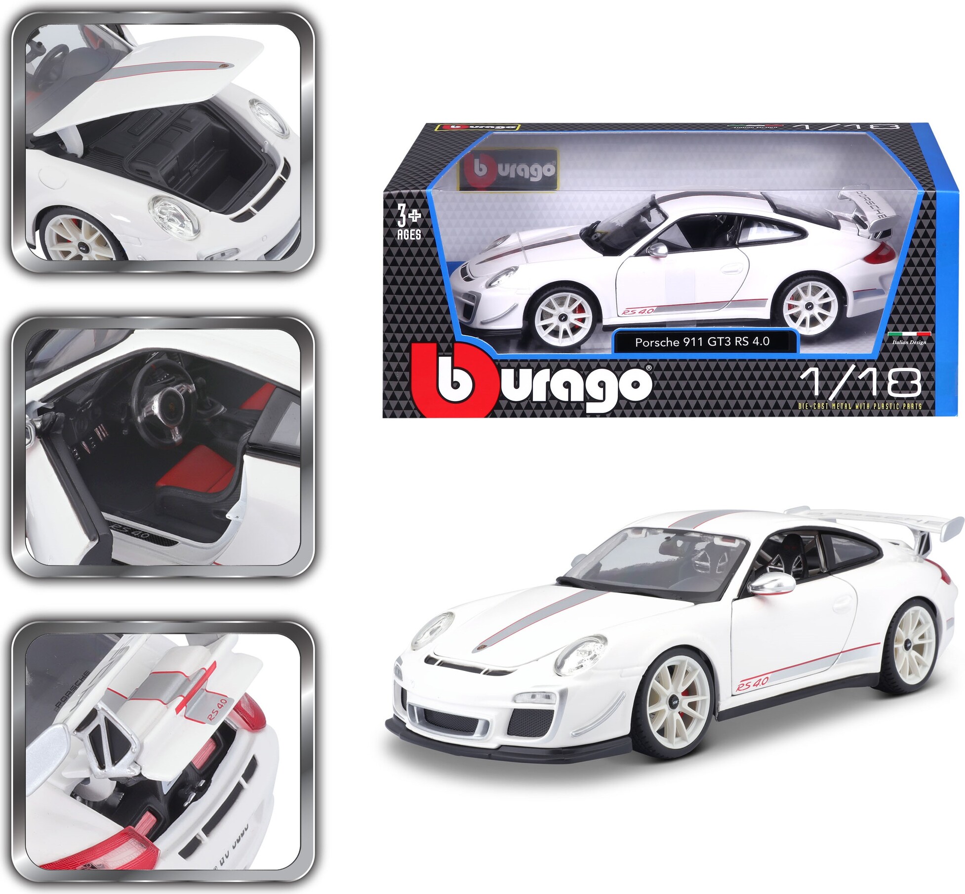 Bburago Porsche 911 GT3 RS 1:18 Diamond, výrobca Bburago. Špičkový model auta Bburago Porsche 911 GT3 RS v mierke 1:18: Kolekcia Diamond katalógové číslo 11036 Model má otváracie dvere a kapoty volant je funkčný Farba: biela Pre deti od 3 rokov