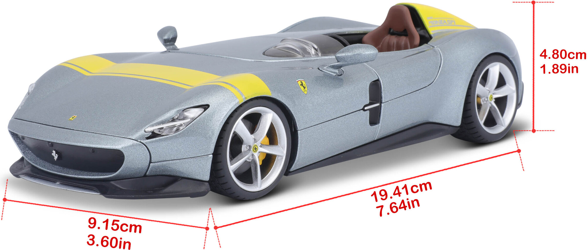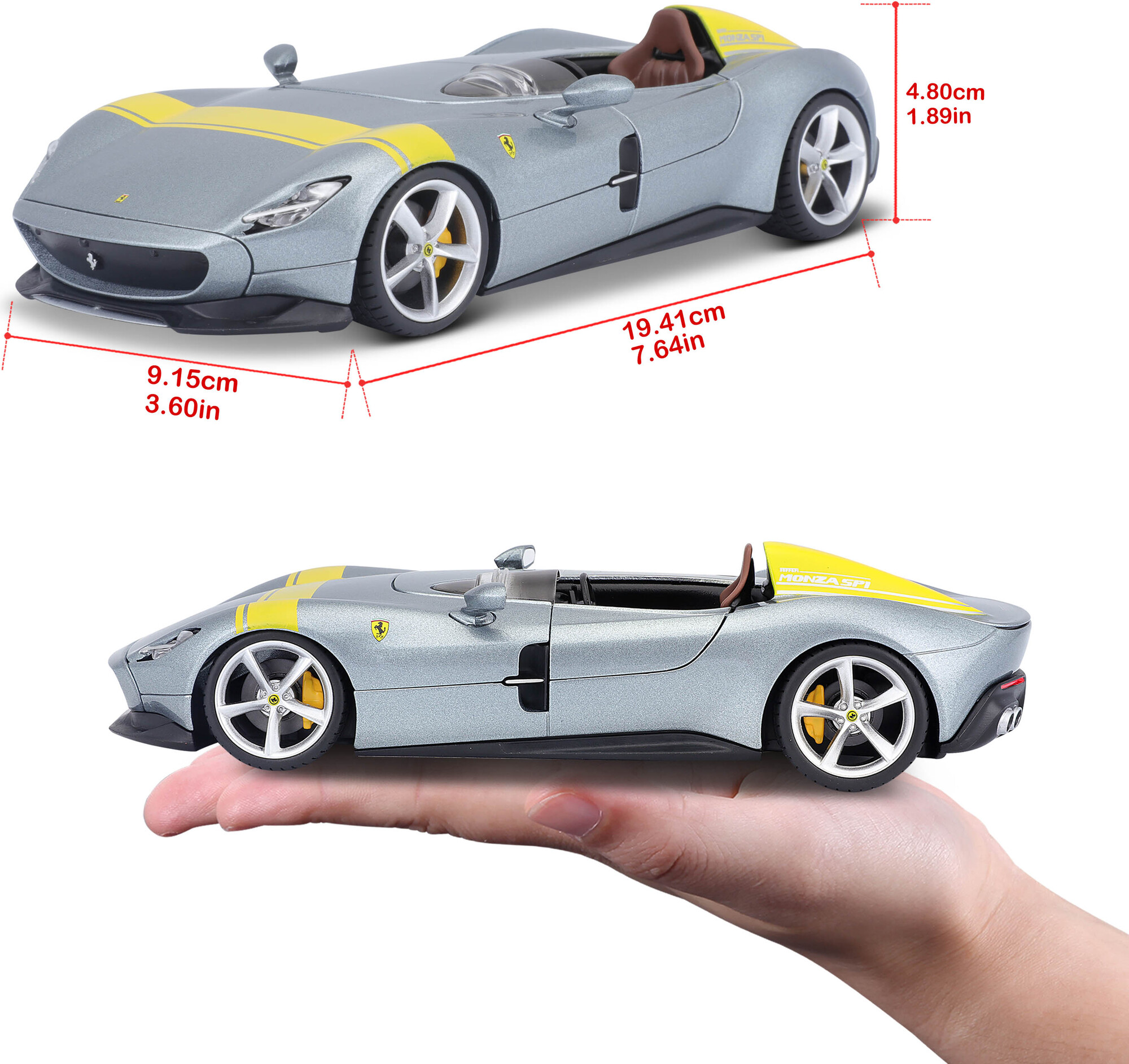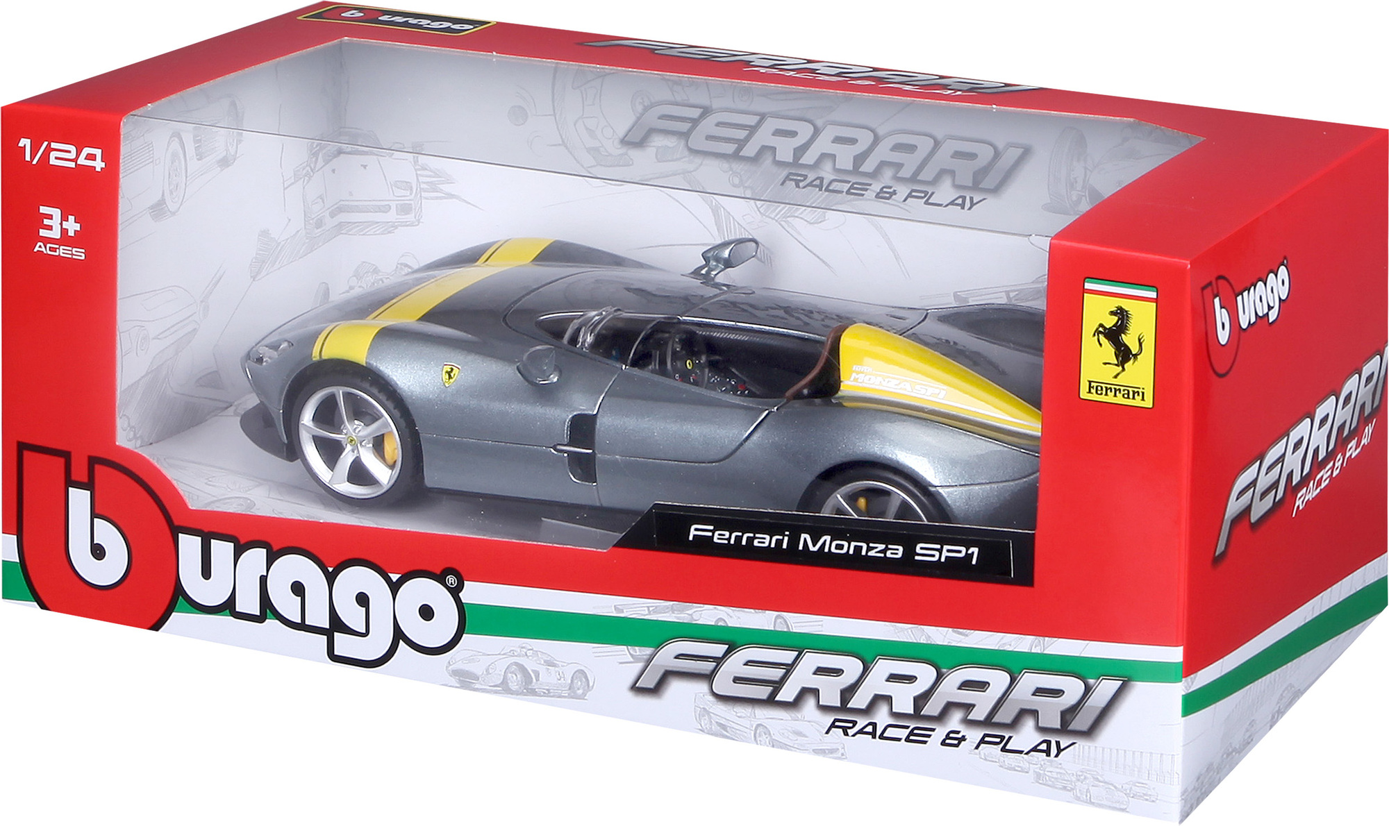 Kovový model auta 1:24 Bburago 18-26027 Ferrari Monza SP1 nielen pre zberateľov. Model je v špičkovej kvalite Farba modelu je strieborná a je približne 18 cm veľký.