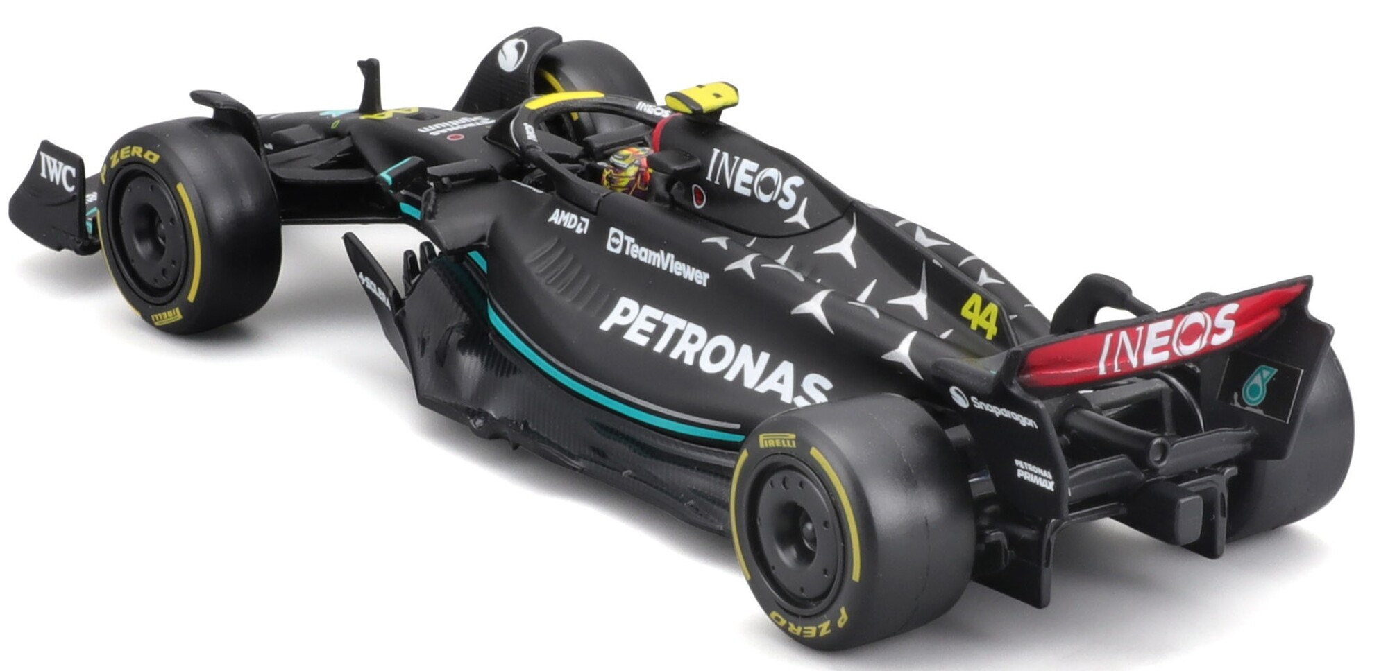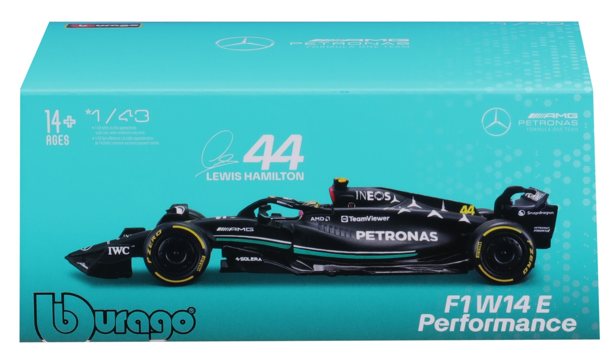 Bburago 1:43 RACE Formula F1 - Mercedes-AMG F1 W14 E Performance (2023) #44 (Lewis Hamilton) - with driver and decorative box