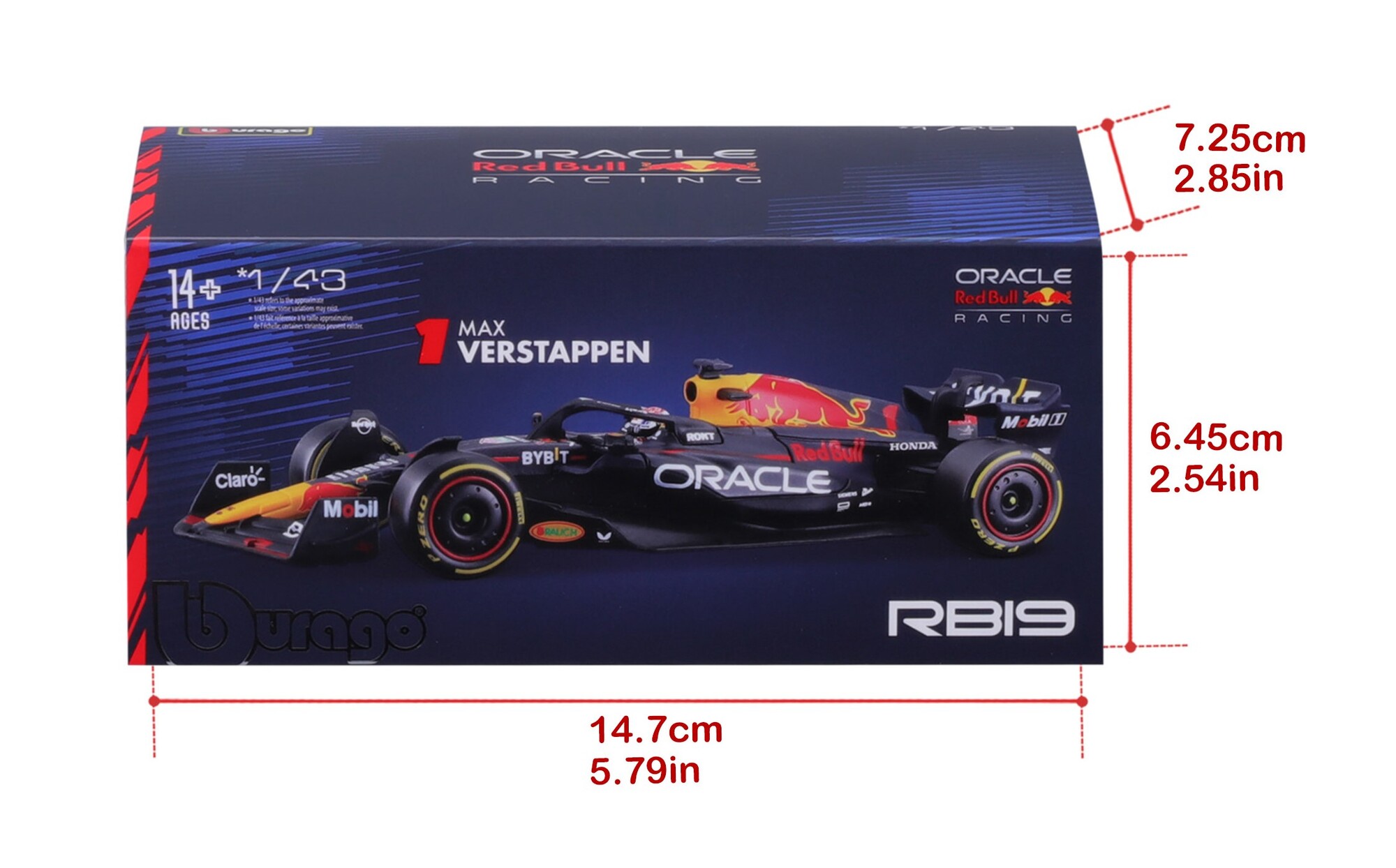 Bburago 1:43 RACE Formula F1 - Red Bull Racing RB19 (2023) #1 (Max Verstappen) - with driver and decorative box