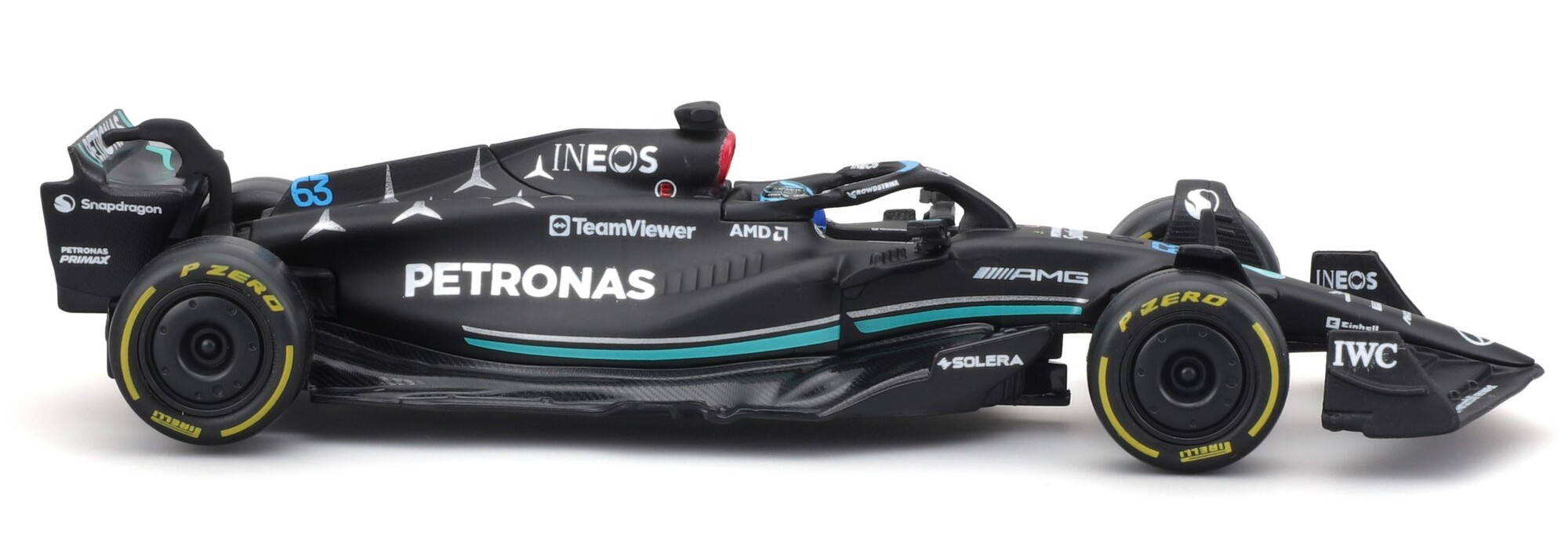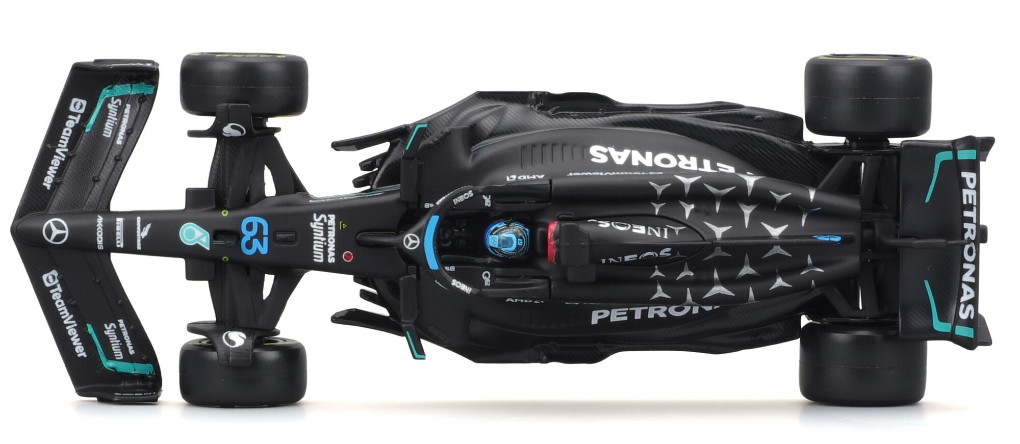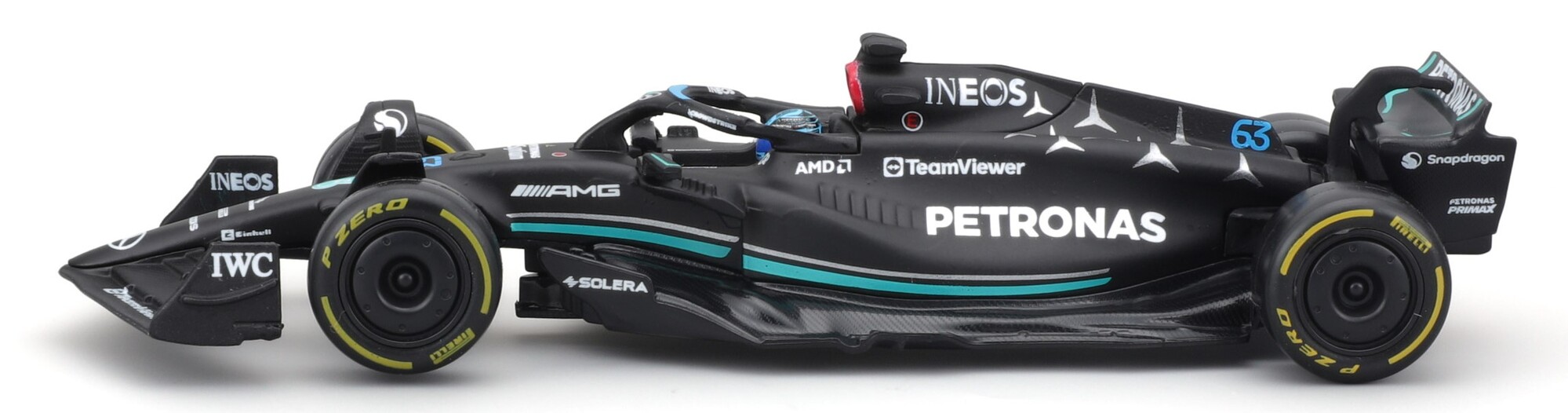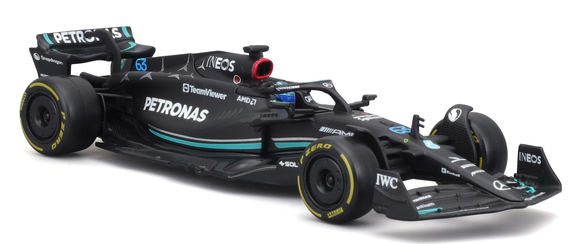 Bburago 1:43 RACE Formula F1 - Mercedes-AMG F1 W14 E Performance (2023) #63 (George Russell) - with driver and decorative box
