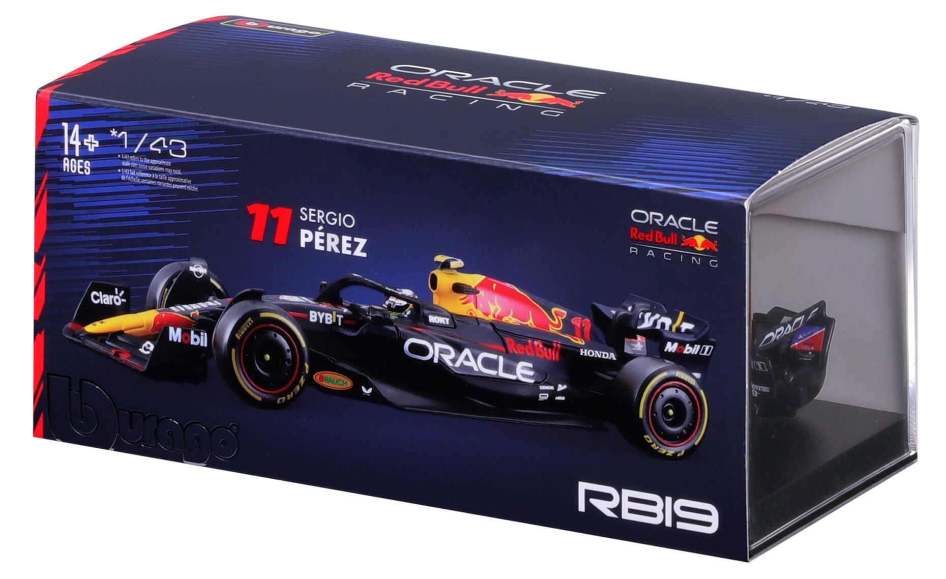 Bburago 1:43 RACE Formula F1 - Red Bull Racing RB19 (2023) #11 (Sergio Pérez) - with driver and decorative box