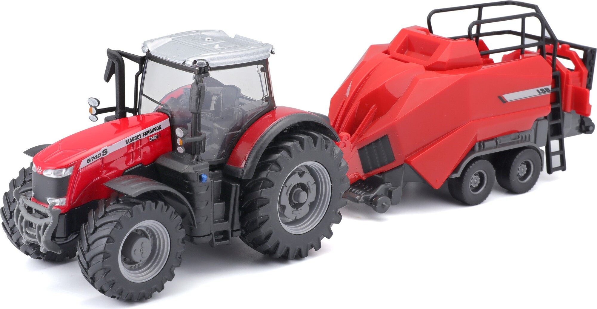 Bburago 1:50 Farm Traktor Massey Ferguson 8740S + Baler Lifter Rood