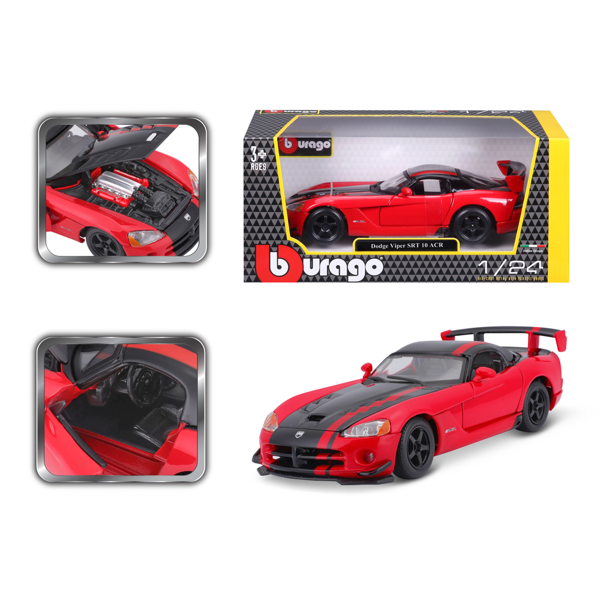 Bburago Bburago - Autá HOBBY, Dodge Viper SRT 10 ACR, červeno-čierna, 1:24