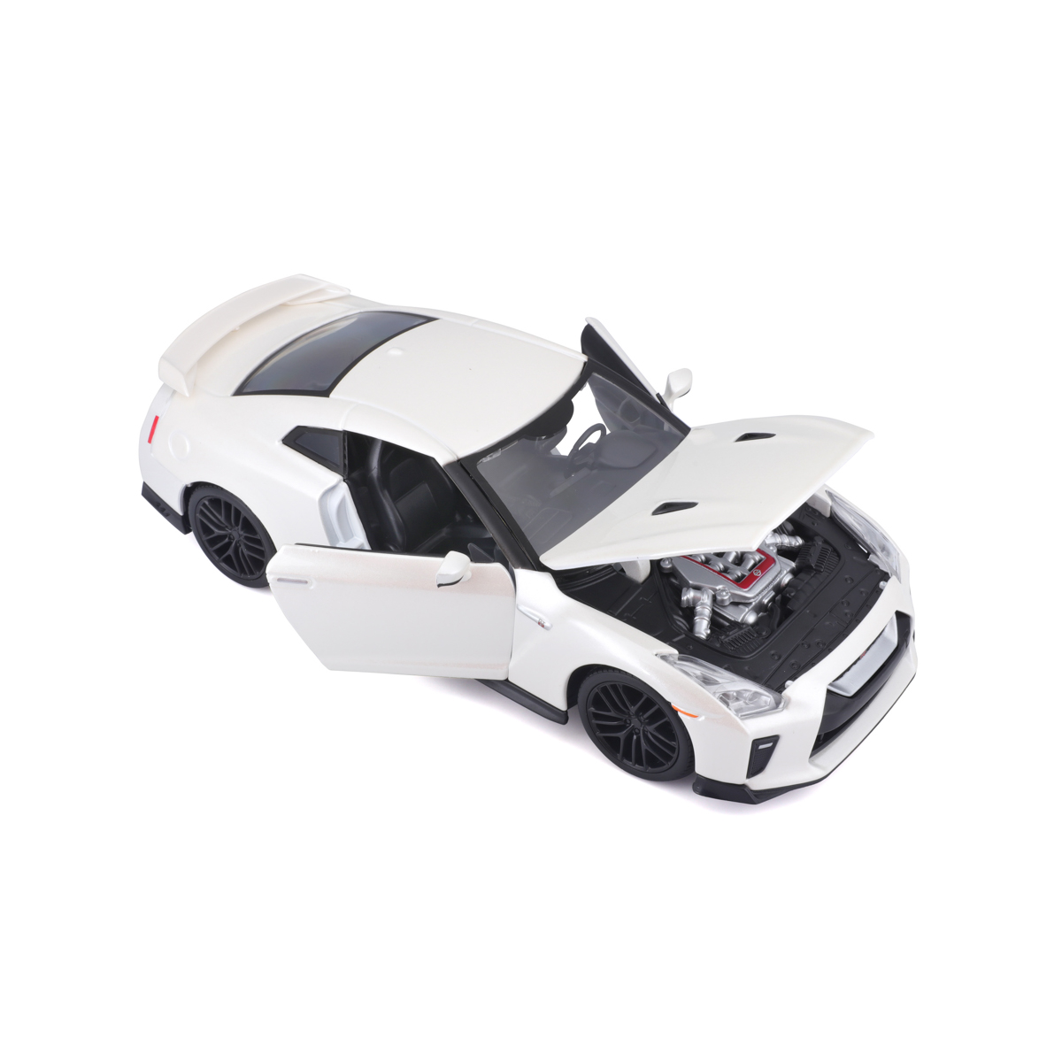 Bburago - Autá HOBBY, Plus, 2017 Nissan GT-R, metal biela, 1:24