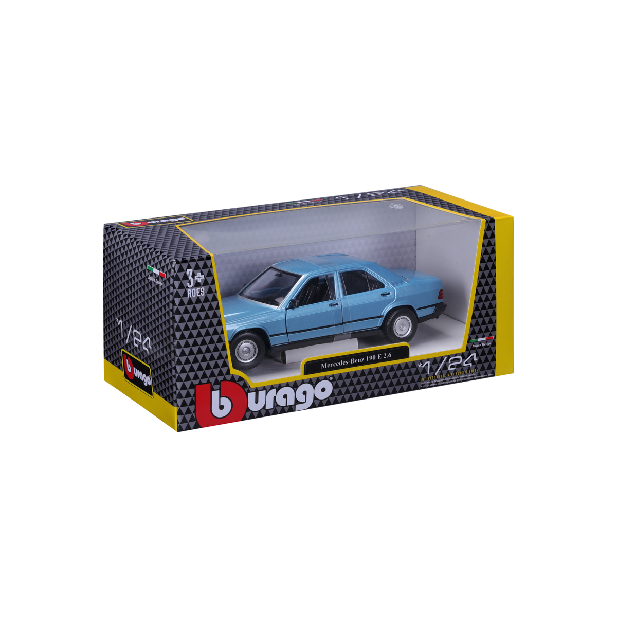 Bburago - Autá HOBBY, Plus, Mercedes-Benz 190 E 2.6, metalic modrá, 1:24