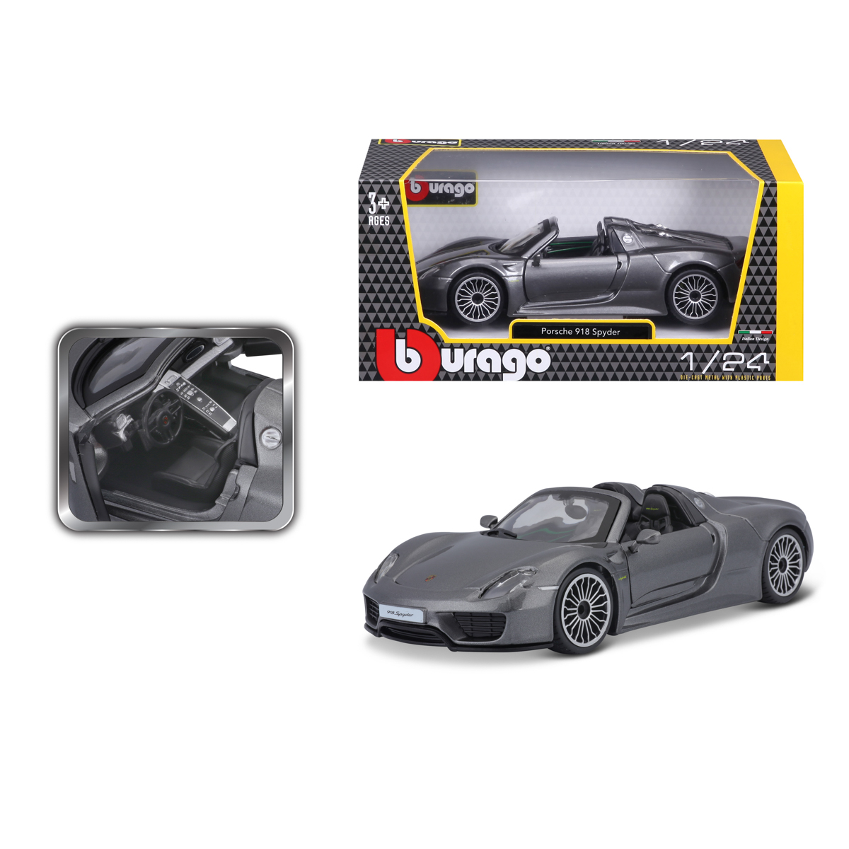 Bburago Bburago - Autá HOBBY, Plus, Porsche 918 Spyder, metalic šedá, 1:24