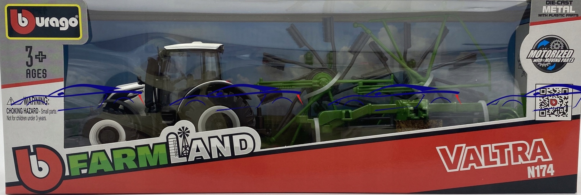 Bburago Bburago Farm 10cm Tractor with Deluxe Trailer - Valtra N174 - Whirl Rake