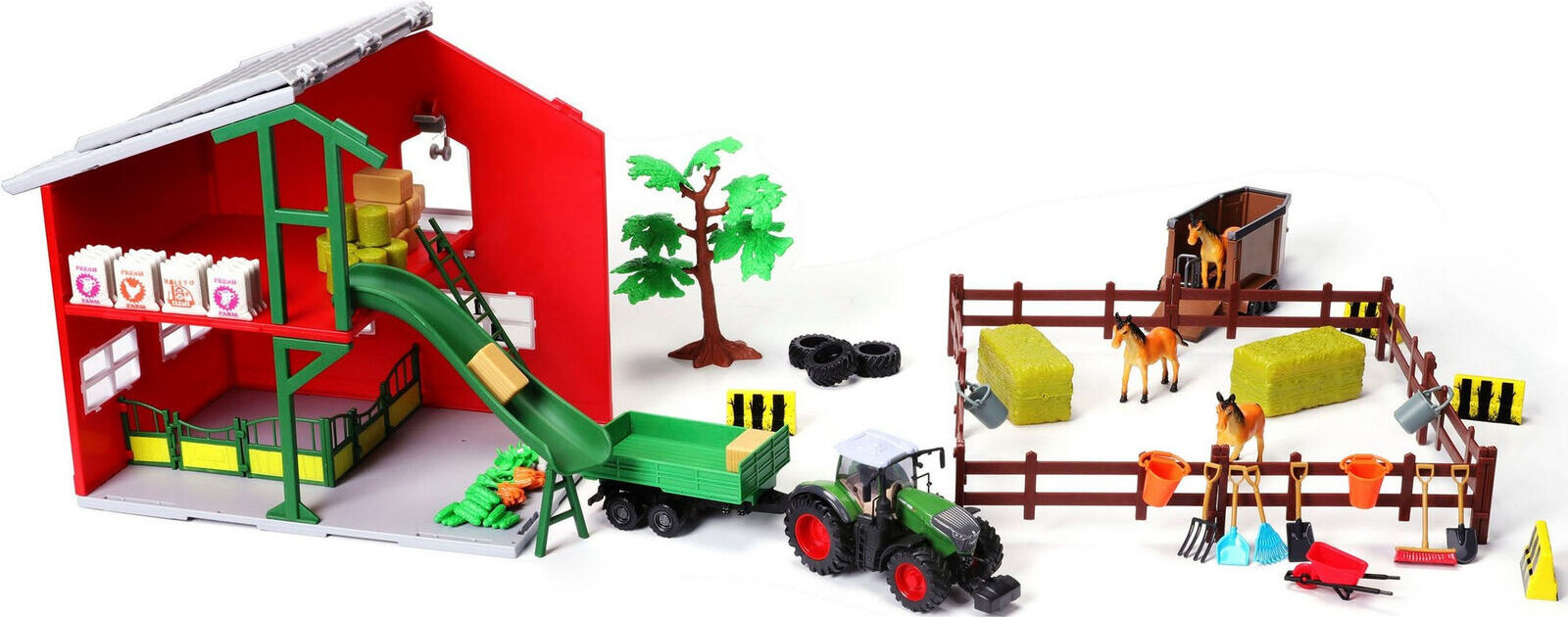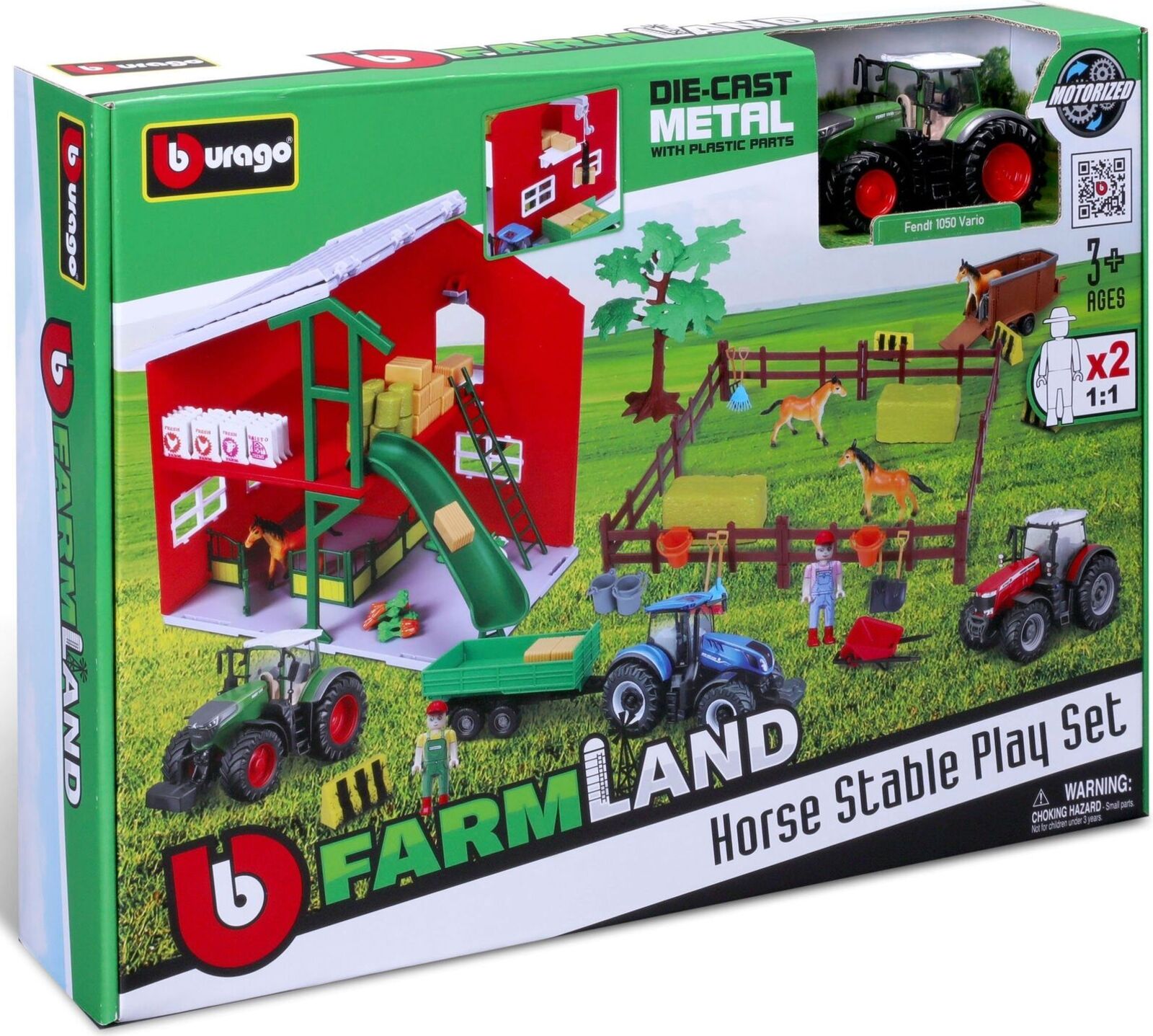 Vysoko detailný traktor New Holland v pomere 1:43 s konskými stajňami a príslušenstvom Podvozok traktora a blatník sú umiestnené nad štyrmi mohutnými kolesami s autenticky vyzerajúcimi pneumatikami s hlbokým dezénom Kabína s otvoreným výhľadom ponúka úplné detaily interiéru Podporuje predstavivosť a hrubú motoriku Vhodné pre deti od 3 rokov