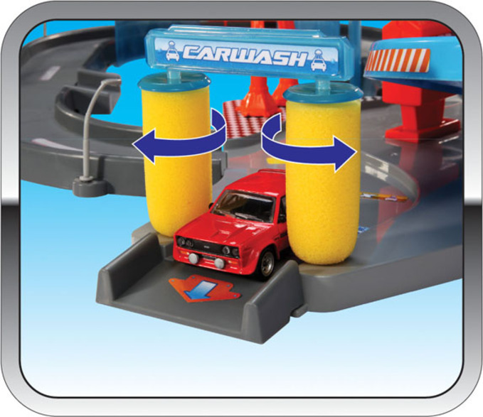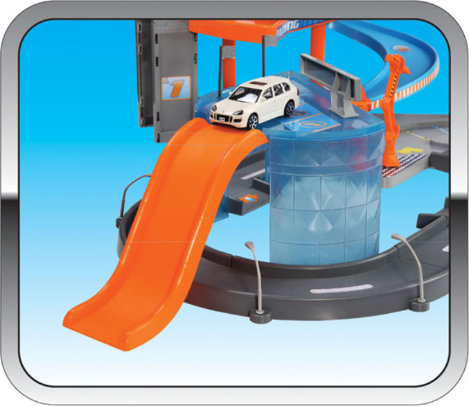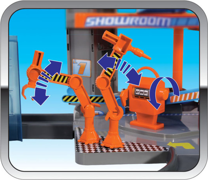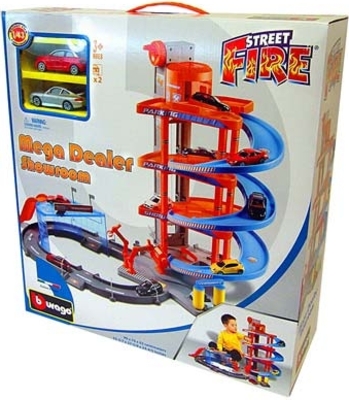 Bburago Mega Dealer Showroom garáž s dvoma autíčkami 30031, výrobca Bburago. Skladacia poschodová garáž Mega Dealer od firmy Bburago obsahuje všetko potrebné na zábavnú hru s autíčkami Bburago. Garáž obsahuje:Štyri poschodia, výťah, cestu, umyvárku,showroom s vlastnou cestou a veľa ďalšieho príslušenstvaviaceré časti sú mechanicky pohyblivéV balení sú aj dve autíčka Bburago v mierke 1:43.Rozmer garáže 90x70x63 cmPre deti od 3 rokov