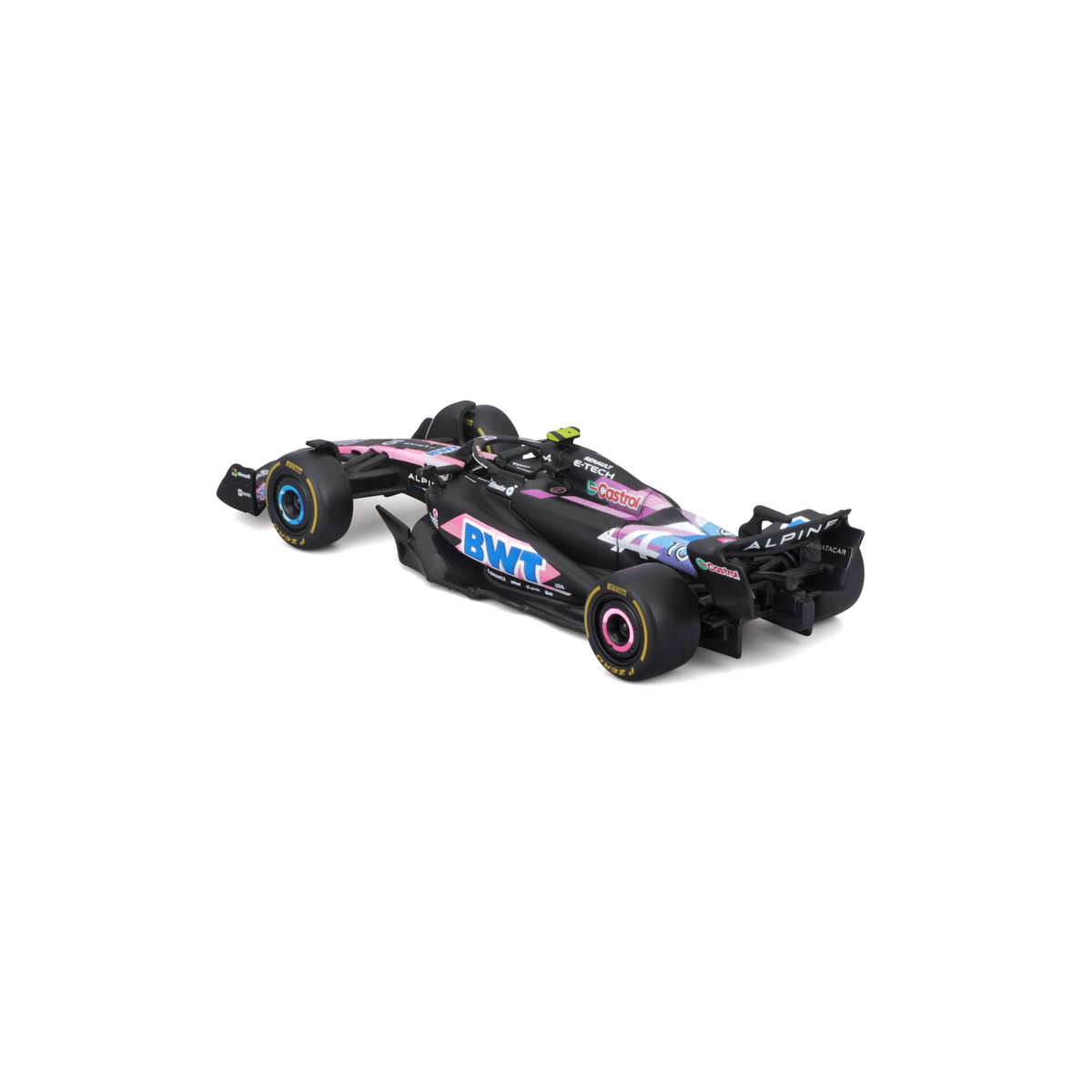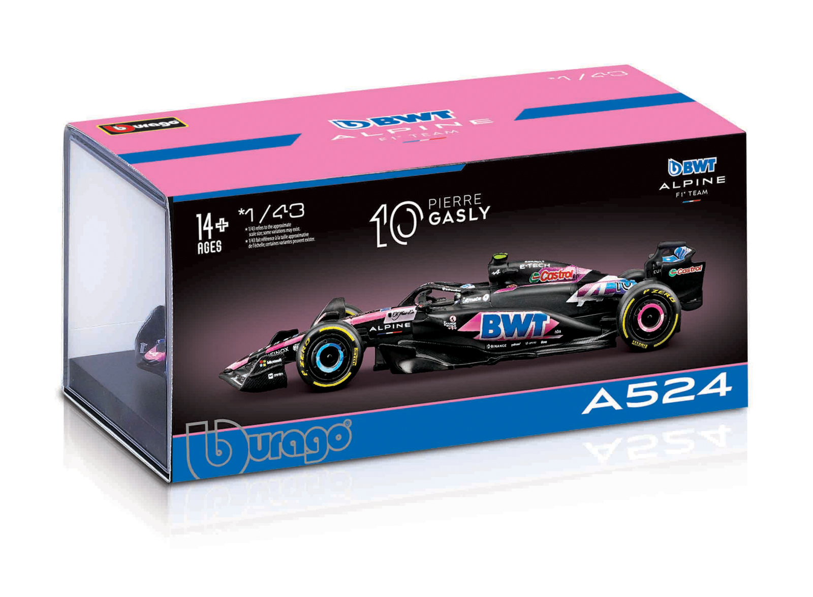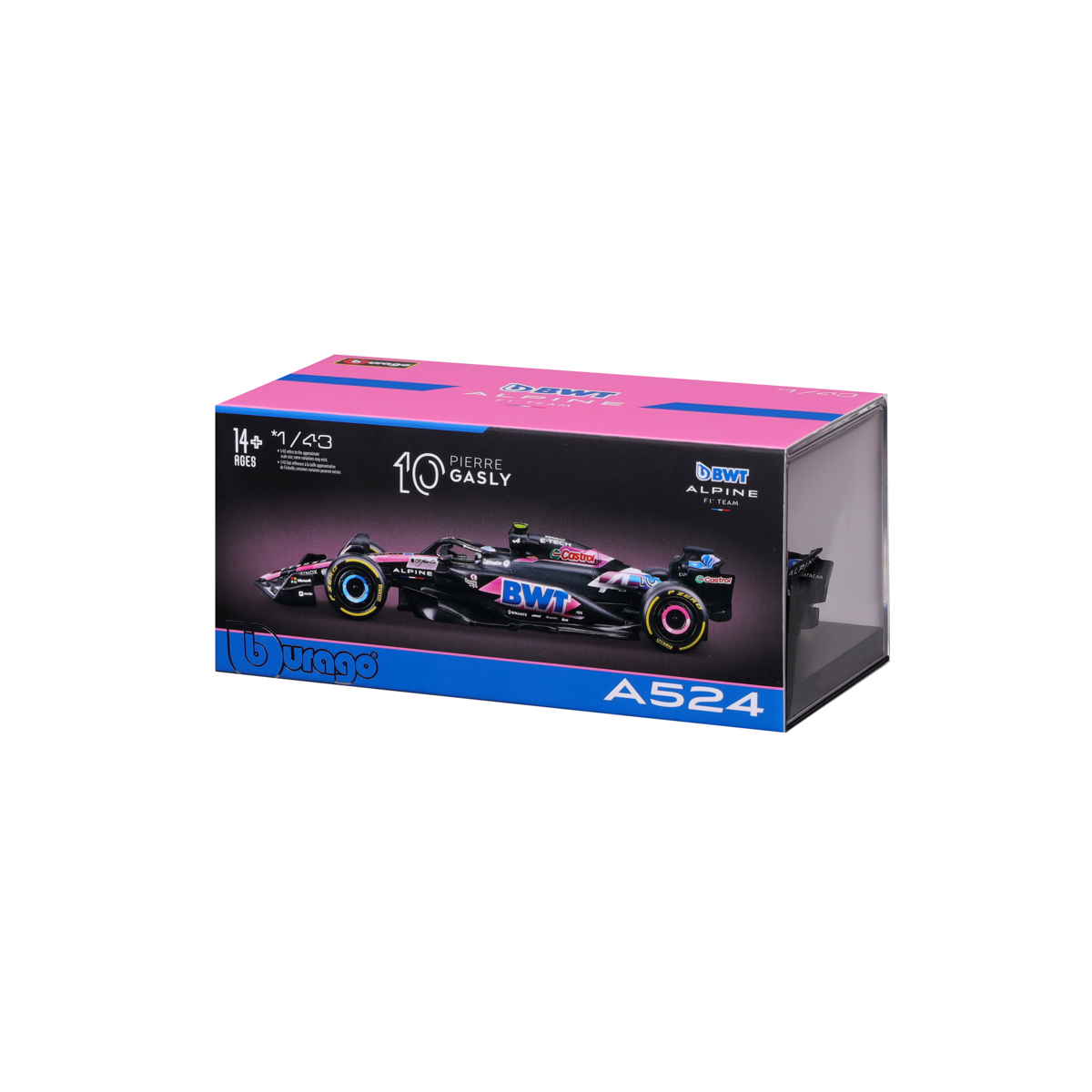 Bburago modely závodných vozidiel Formule 1 v mierke 1:43 z kolekcie RACE sú zbierkou krásneho dizajnu s vysokým dôrazom na presnosť detailov. Formula zo stajne Alpine A524 (2024) s autentickými detailmi závodného vozidla a helmy jazdca. Modely sú vyrobené z liateho kovu s plastovými detailmi. Každý z modelov v klasickom závodnom dizajne je umiestnený v dekoratívnom akrylovom boxe. Vďaka dekoratívnemu boxu je tento model skvelým zberateľským kúskom a darčekom na každú príležitosť. Nevhodné pre deti do 3 rokov. Rozmery balenia: 6,7 x 14,7 x 7,5 cm. Vek: 14+