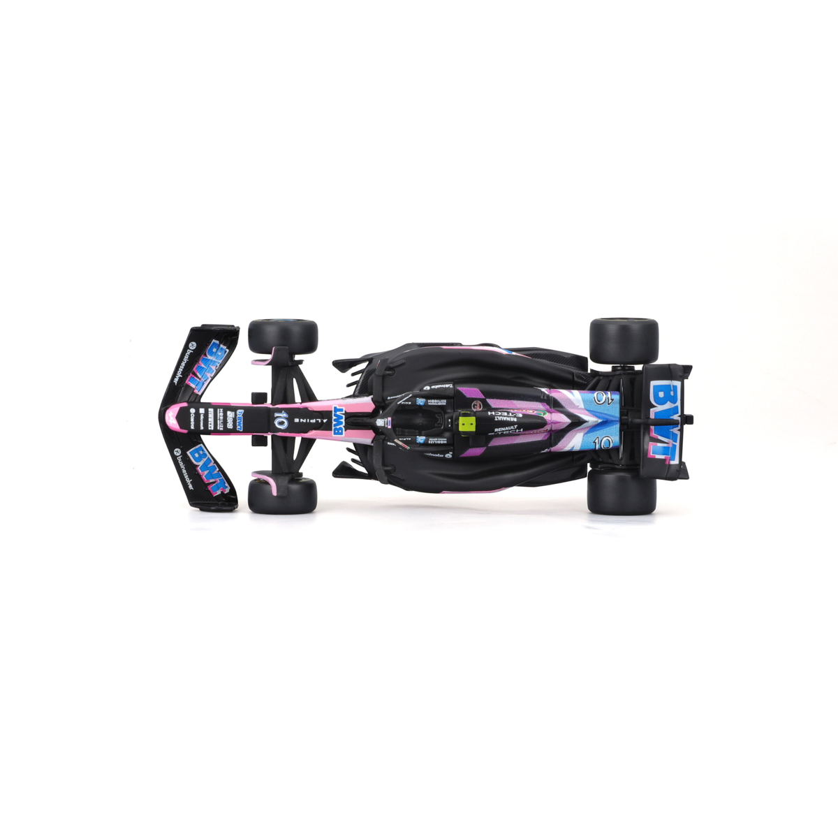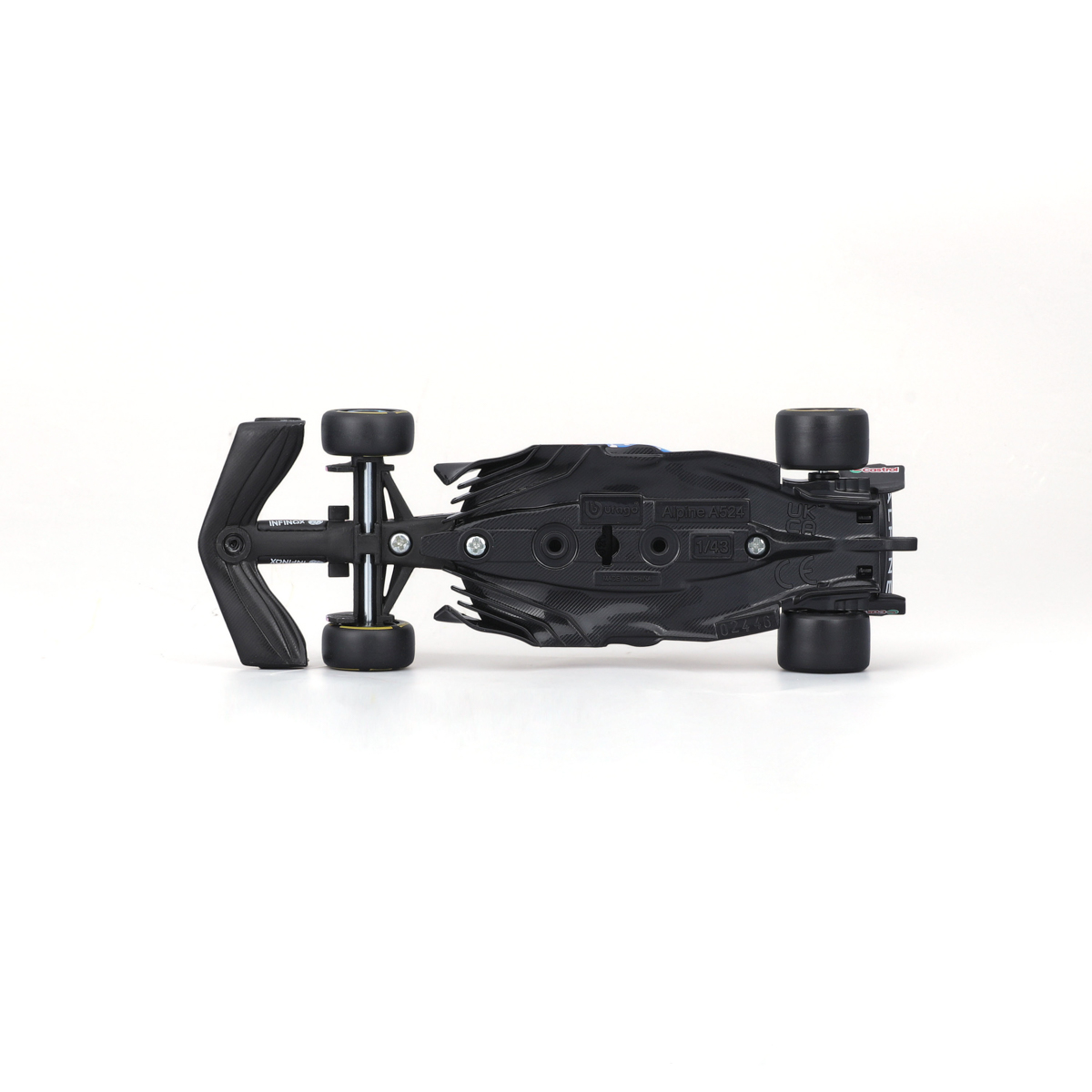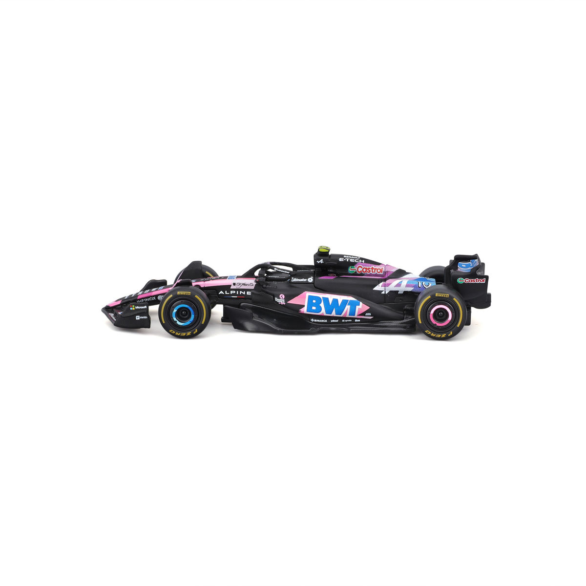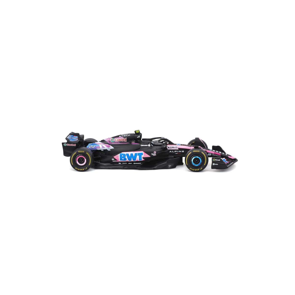 Bburago modely závodných vozidiel Formule 1 v mierke 1:43 z kolekcie RACE sú zbierkou krásneho dizajnu s vysokým dôrazom na presnosť detailov. Formula zo stajne Alpine A524 (2024) s autentickými detailmi závodného vozidla a helmy jazdca. Modely sú vyrobené z liateho kovu s plastovými detailmi. Každý z modelov v klasickom závodnom dizajne je umiestnený v dekoratívnom akrylovom boxe. Vďaka dekoratívnemu boxu je tento model skvelým zberateľským kúskom a darčekom na každú príležitosť. Nevhodné pre deti do 3 rokov. Rozmery balenia: 6,7 x 14,7 x 7,5 cm. Vek: 14+