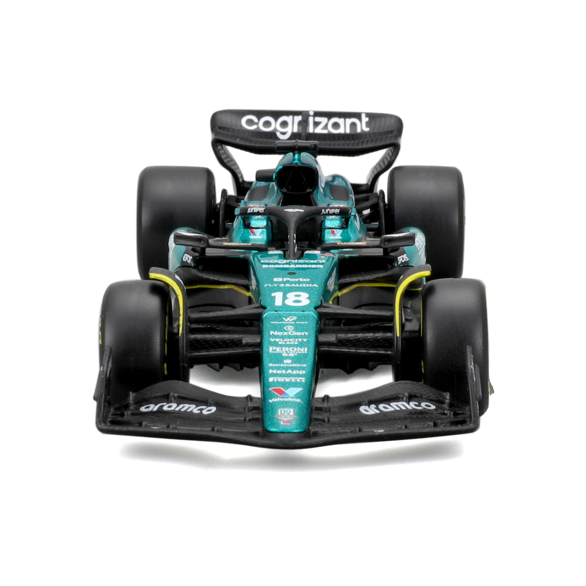 Bburago modely závodných vozidiel Formule 1 v mierke 1:43 z kolekcie RACE sú zbierkou krásneho dizajnu s vysokým dôrazom na presnosť detailov. Modely F1 zo stajne Aston Martin Aramco Congnizant AMR23 (2023) sú vyrobené z liateho kovu s plastovými detailmi. Každý z modelov je v klasickom závodnom designe a so závodným číslom. Balené v krabičke. Nevhodné pre deti do 3 rokov. Rozmery balenia: 6,7 x 14,7 x 7,5 cm. Vek: 3+