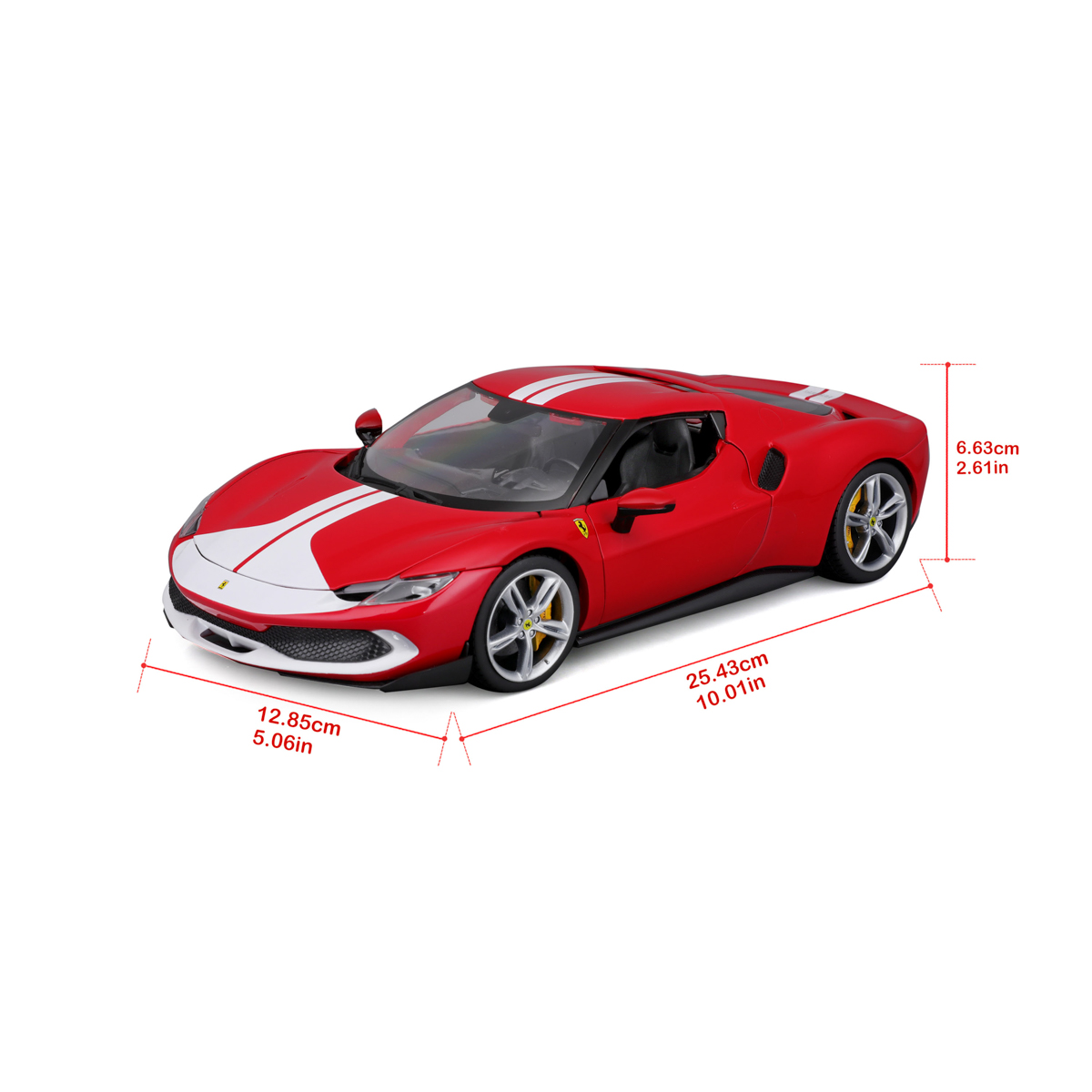 Modely automobilov Ferrari v mierke 1:18 z kolekcie RACE+PLAY sú zbierkou krásneho designu s vysokým dôrazom na presnosť detailov. Detailné prevedenie motorových priestorov, interiéru, kolies a odznakov. Modely sú vyrobené z liateho kovu s plastovými detailmi. Väčšina modelov z kolekcie má otváracie dvere, kufor alebo kapotu. Všetky modely v kolekcii majú plne funkčné riadenie a zavesenie všetkých kolies. Model je namontovaný na výstavnom stojane. Balené v krabičke. Nevhodné pre deti do 3 rokov. Rozmery balenia: 12,6 x 33,5 x 16,5 cm. Vek: 3+
