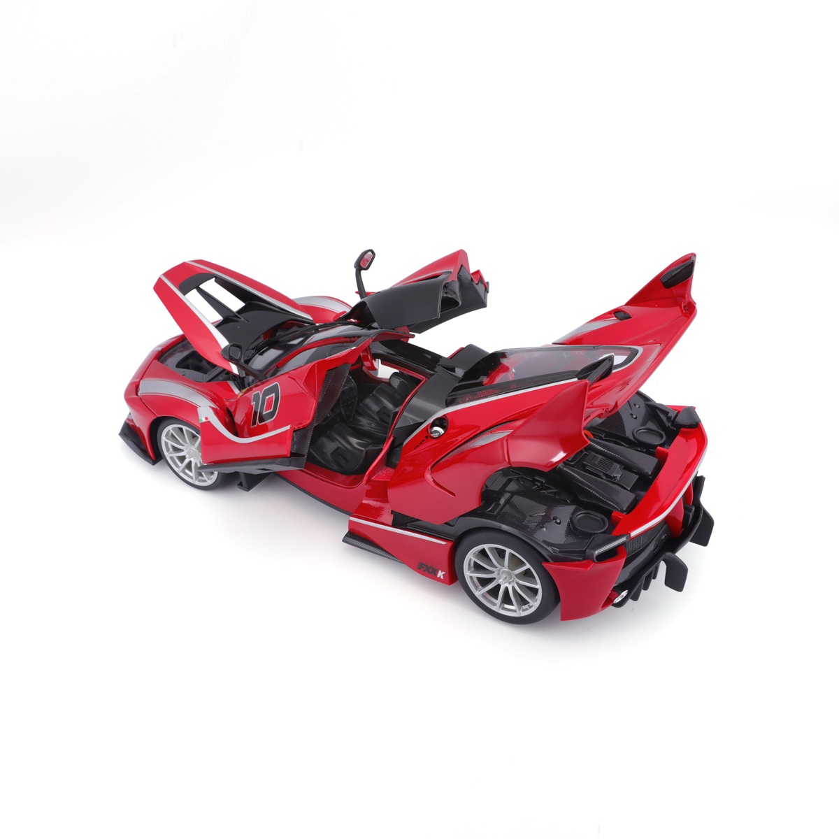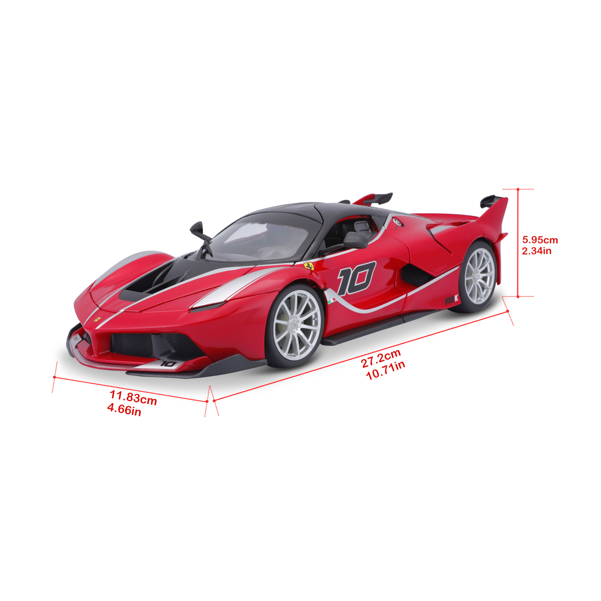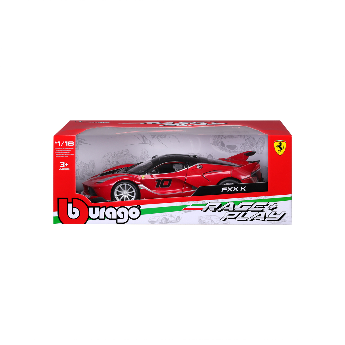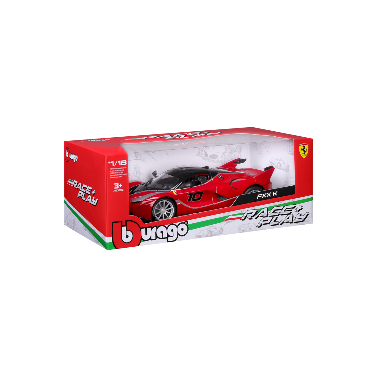 Modely automobilov Ferrari v mierke 1:18 z kolekcie RACE+PLAY sú zbierkou krásneho designu s vysokým dôrazom na presnosť detailov. Detailné prevedenie motorových priestorov, interiéru, kolies a odznakov. Modely sú vyrobené z liateho kovu s plastovými detailmi. Väčšina modelov z kolekcie má otváracie dvere, kufor alebo kapotu. Všetky modely v kolekcii majú plne funkčné riadenie a zavesenie všetkých kolies. Model je namontovaný na výstavnom stojane. Balené v krabičke. Nevhodné pre deti do 3 rokov. Rozmery balenia: 12,6 x 33,5 x 16,5 cm. Vek: 3+
