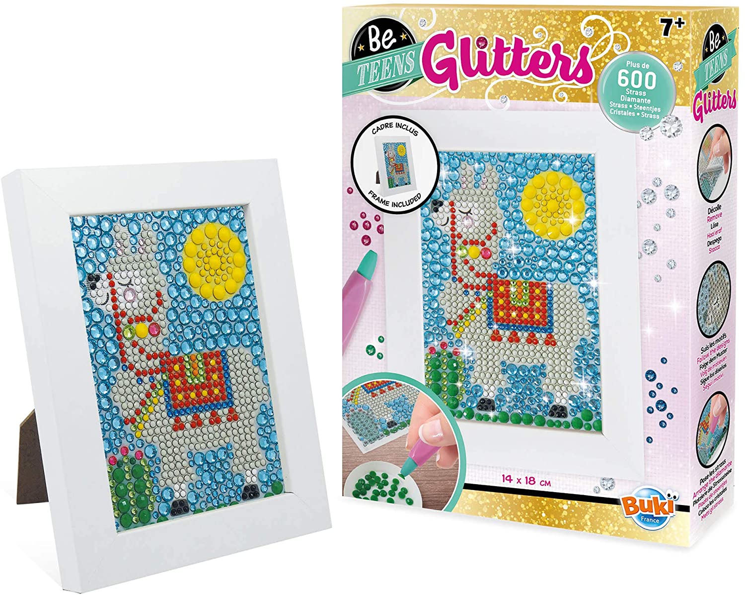 Sada GLITTERS obsahuje obrázok so samolepiacou vrstvou a šablónou s písmenami a číslami, pričom každé písmeno/číslo predstavuje určitú farbu a veľkosť kryštálu. Pomocou nástroja sa potom kryštáliky umiestňujú na šablónu. Výsledný obrázok sa vloží do rámčeka a tvorí krásnu dekoráciu.