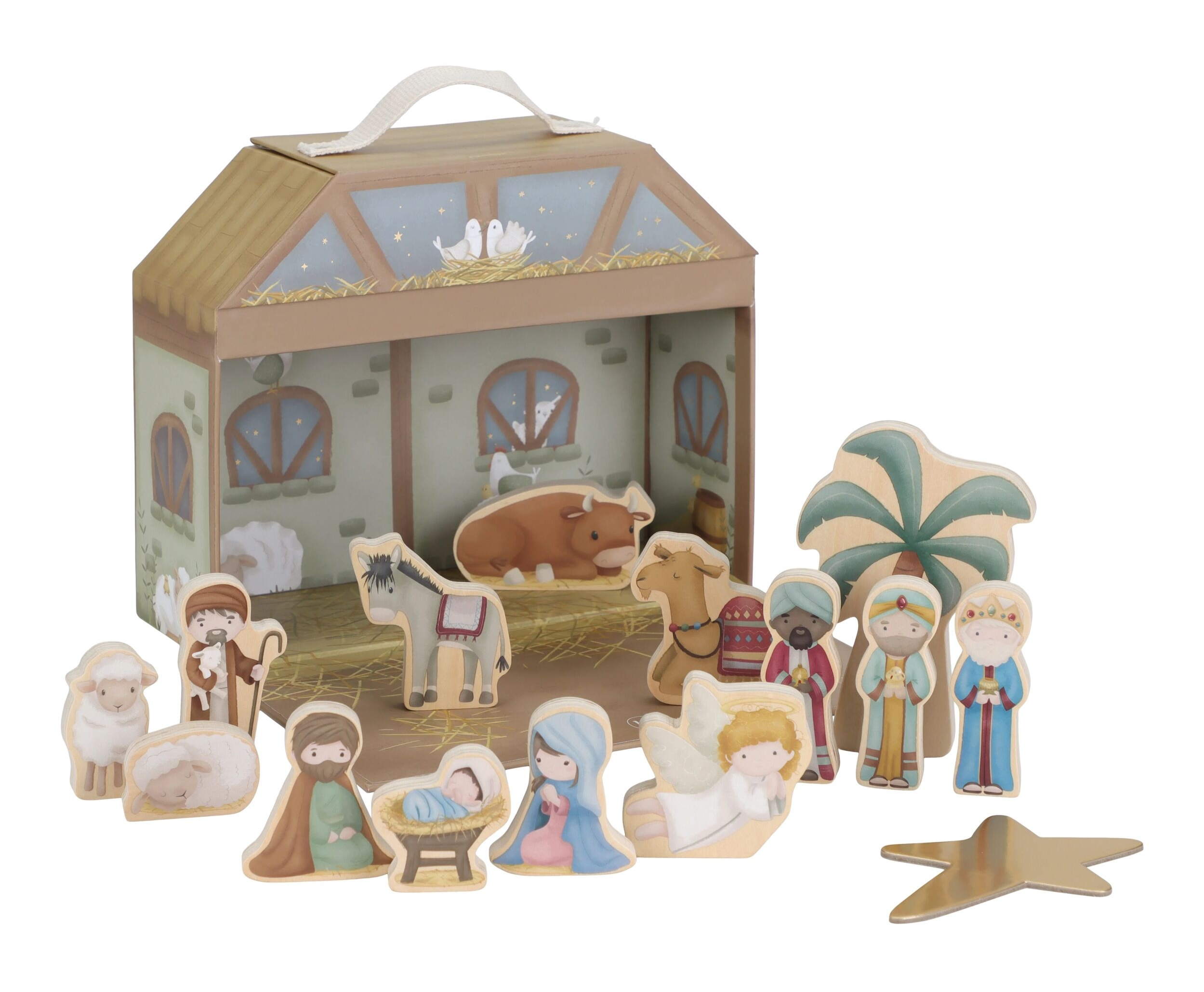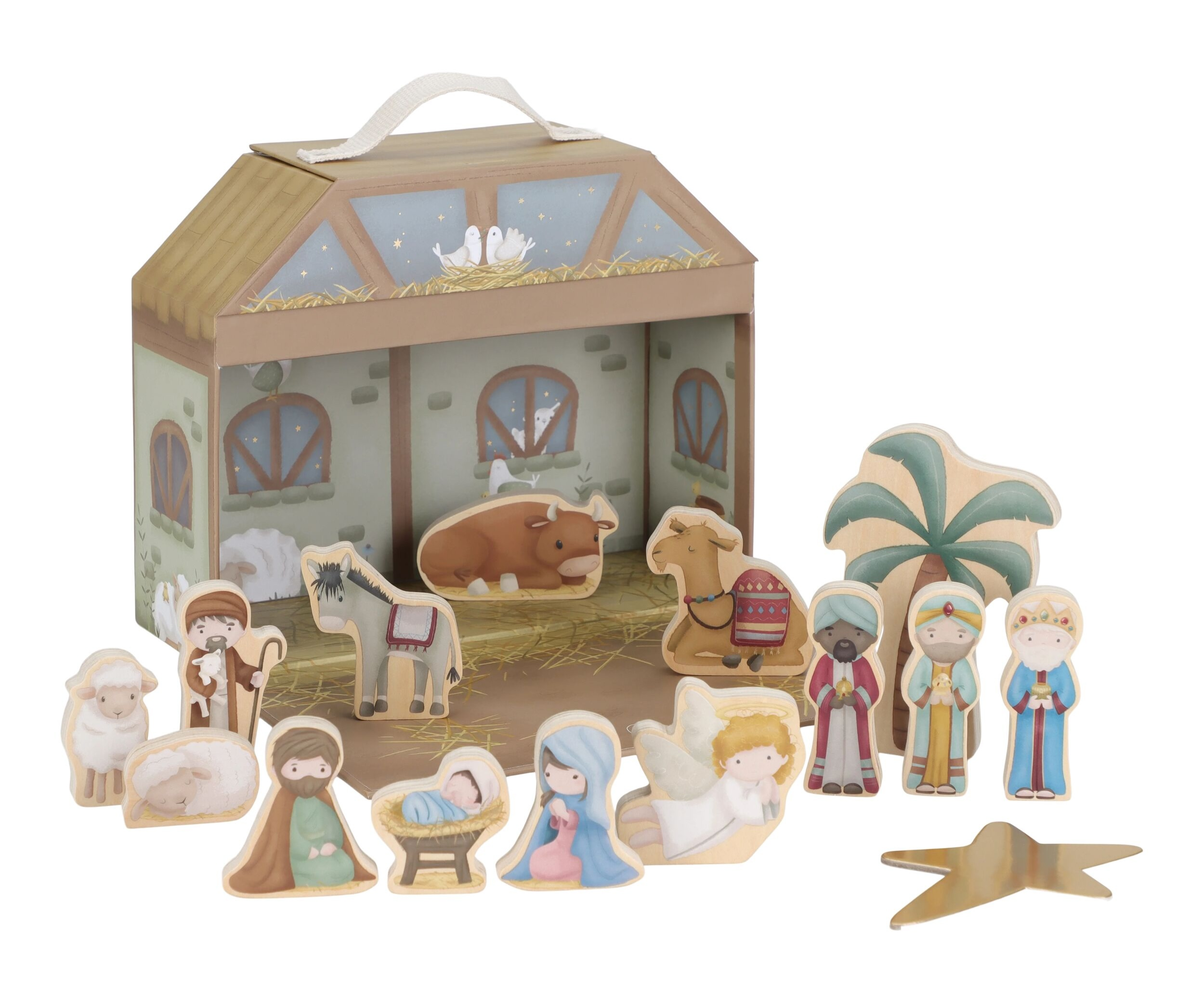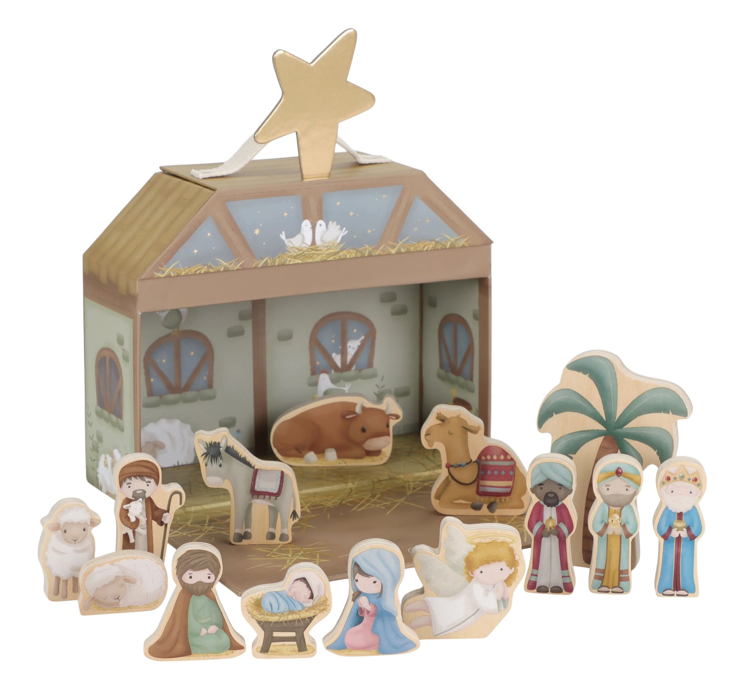 Krásný betlém s postavami z tradičního vánočního příběhu potěší vás i vaše děti každé Vánoce. 14 postaviček je vyrobeno ze dřeva, chlév z kvalitního pevného kartonu slouží i jako přenosný a úložný kufřík.
