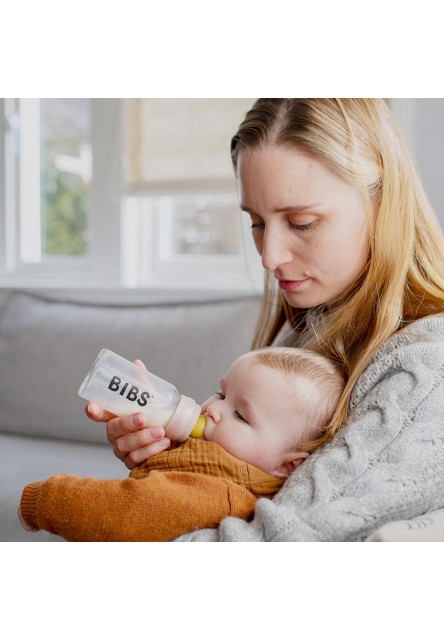 Toto je len set doplnkov na fľašu. Neobsahuje sklenenú fľašu, tú je potrebné zakúpiť samostatne.   BIBS Baby Bottle sklenené fľaše sú zárukou, že bábätká prídu pri kŕmení do kontaktu len s kvalitným prémiovým a bezpečným materiálom. BIBS dojčenské fľaše vynikajú svojím nadčasovým retro dizajnom, v ktorom je dokonale prepracovaný každý detail.   Okrúhly tvar cumlíka, ktorý deti poznajú u BIBS Colour cumlíkov. Obľúbená chuť a vôňa prírodného kaučuku. Unikátny antikolikový ventil v tvare srdiečka. Odporúčané pôrodnými asistentkami na podporu prirodzeného dojčenia. Všetky časti zo 100%25 bezpečného potravinárskeho materiálu bez obsahu BPA, PVC a ftalátov., 100%25 recyklovateľné.   CUMLÍK: Cumlíky sú vyrobené z prírodného kaučuku, ktorý je u detí mimoriadne obľúbený vďaka svojej špecifickej chuti a vôni. Ich okrúhly tvar typický pre cumlíky BIBS podporuje podobné umiestnenie jazyka a správnu aktívnu techniku satia ako pri dojčení. Dovoľuje tak jednoducho kombinovať dojčenie s kŕmením z fľaše. Unikátny antikolikový ventil v tvare srdiečka zabráni, aby sa do bruška bábätka dostával vzduch a napomáha tak pokojnému kŕmeniu bez bolesti bruška a výskytu kolík.   OBSAH BALENIA: Vrchnák. Objímka. 1 cumlík z prírodného kaučuku (pomalý prietok). Tesniaci disk – umiestnite pod objímku pri prenose, na cestách, do tašky, či kočíka. Skladací lievik – pre rýchle a jednoduché naplnenie fľaše.   MIX&MATCH: V predaji je buď kompletná sada dojčenskej fľaše (110 ml alebo 225 ml), ktorá vám poskytne všetko, čo potrebujete, aby ste mohli začať, alebo si môžete zakúpiť samostatnú náhradnú sklenenú fľašu (110 ml alebo 225 ml) a samostatný set doplnkov na fľašu a vyskladať si tak veľkosť a farbu podľa vašich preferencií. V ponuke sú samozrejme aj náhradné cumlíky.   BIBS Baby Bottle spĺňa nasledujúce normy: EN 1400+A2 EN 14350:2020 EN 71-3-2019 DIN EN 12868 2017-04 DIN EN 1186 2002-07 DIN CEN/TS 13130-23 2005-05 DIN EN ISO 11885 2009-09   ČISTENIE:   Pred prvým použitím výrobok rozoberte a všetky časti sterilizujte ponorením do vriacej vody po dobu 5 minút. Sterilizáciu neskôr opakujte podľa potreby.   Čistite ručne s použitím jemného saponátu a kefy na fľaše, dôkladne opláchnite. Fľašu a plastové časti (cumlík nie!) je možné umývať v umývačke riadu. Po umytí nechajte všetky časti dôkladne vyschnúť. Cumlík nevystavujte priamemu slnečnému žiareniu ani iným zdrojom tepla. Z hygienických a bezpečnostných dôvodov cumlík vymeňte za nový každých 4-6 týždňov.   Plastové časti a cumlík neohrievajte/nesterilizujte v mikrovlnke. V prípade ohrevu nápoja v mikrovlnke použite len samostatnú sklenenú fľašu a nezabudnite pred kŕmením obsah premiešať a skontrolovať jeho teplotu.