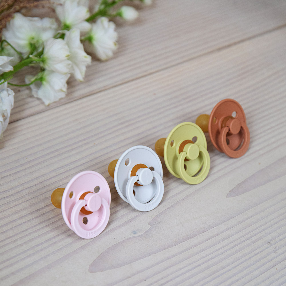 BIBS dobývajú celý svet. Jednoduché a štýlové. Ikonické cumlíky navrhnuté a vyrábané v Dánsku už od roku 1978. Ich minimalistický škandinávsky dizajn a široký farebný výber sú pre BIBS cumlíky typické. Všetky BIBS produkty sú garanciou najvyššej kvality detského sortimentu. Sacia časť je vyrobená zo 100%-ného prírodného kaučuku, ktorý je mimoriadne pružný a mäkký zároveň, odolný voči vytvoreniu trhlín a odštiepeniu malých kúskov. Cumlík je navrhnutý tak, aby nedráždil citlivú pokožku bábätka. Okrúhly krúžok s vetracími otvormi má klenutý tvar, takmer vôbec sa nedotýka pokožky okolo úst, tá preto zostáva kľudná, bez otlačkov a podráždení. Vďaka mäkučkému kaučuku a zabudovanému vzduchovému ventilu dieťa cumlík ľahko stláča a formuje v ústach, čím je zachovaný prirodzený vývin podnebia, ďasien a zúbkov detí. Prečo deti aj rodičia obľubujú cumlíky BIBS Colour? Extra ľahučký. Vďaka špeciálnemu klenutému tvaru krúžku je minimalizovaný dotyk cumlíka s pokožkou a nevznikajú otlačky a podráždenia. Guľatý / čerešničkový tvar sacej časti si často obľúbia aj deti, ktoré odmietajú iné tvary cumlíka. Dieťa saje len 100% prírodný bezpečný materiál – kaučuk vyrobený z miazgy stromu Hevea. Výnimočná chuť prírodného kaučuku, deti ho prirodzene uprednostňujú pred syntetickými materiálmi. Štýlový dizajn v mnohých farebných prevedeniach. Vyrobené v EU. Zloženie: Sacia časť: 100% prírodný kaučuk Ostatné časti: polypropylén (PP) potravinárskej kvality. Bez BPA, PVC, ftalátov a iných škodlivých látok. Vyrobené v Dánsku. Testované v Consumer Lab Denmark. V súlade s európskym štandardom EN 1400+A2. Veľkosti: BIBS Colour cumlíky sú k dispozícii v 3 veľkostiach. Veľkosť 1: 0-6 mesiacov Veľkosť 2: 6-18 mesiacov Veľkosť 3: od 18 mesiacov