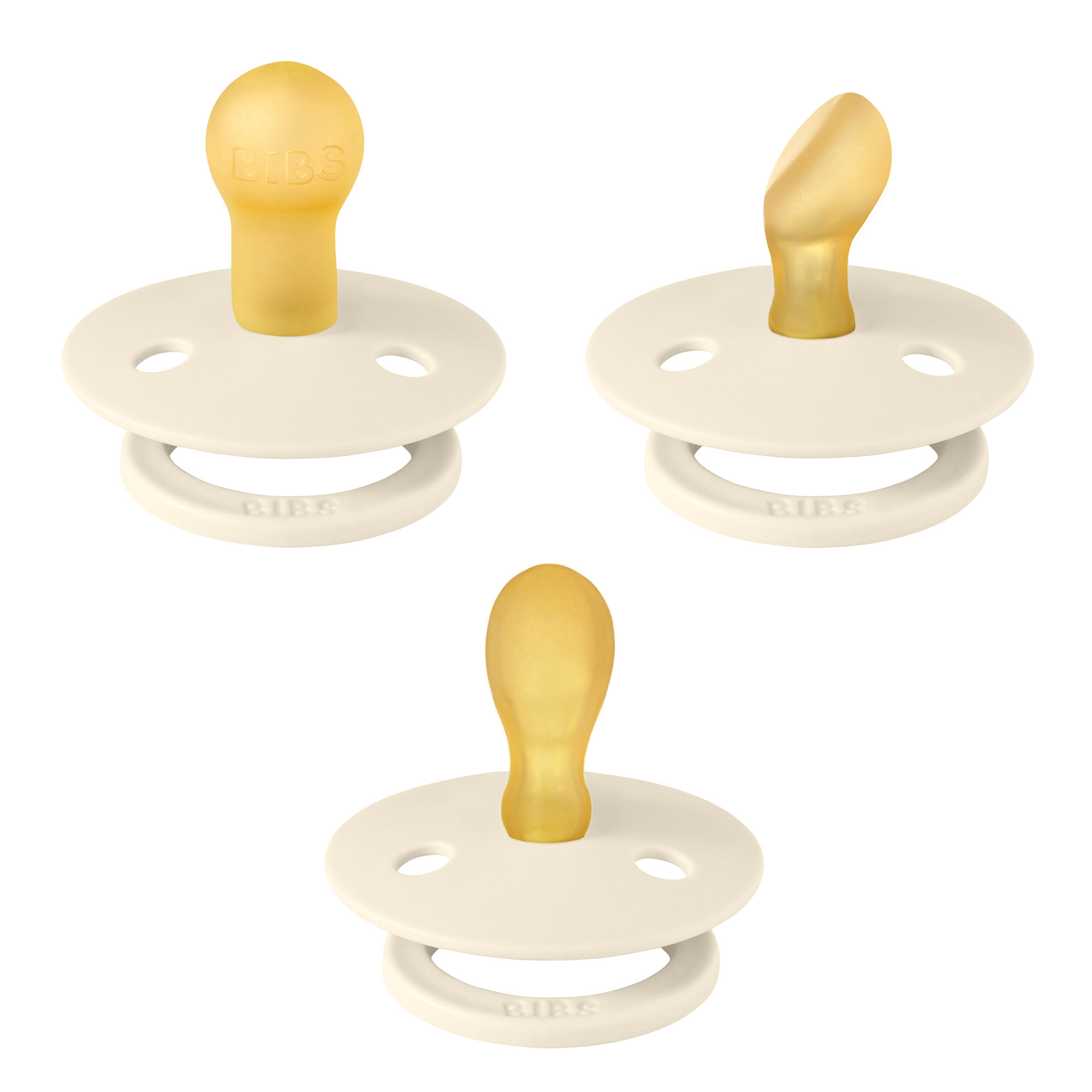 My v BIBS veríme, že neexistuje správny alebo nesprávny tvar cumlíkov. Každé dieťa je iné a individuálne a niekedy je potrebné vyskúšať mnoho cumlíkov, kým si bábätko vyberie ten svoj ideálny – okrúhly čerešničkový, symetricky tvarovaný, alebo anatomický. BIBS Colour TRY-IT 3-balenie ponúka najobľúbenejšie Colour kaučukové cumlíky v troch rôznych tvaroch. Otestujte a nájdite ten pravý cumlík pre vaše bábätko.