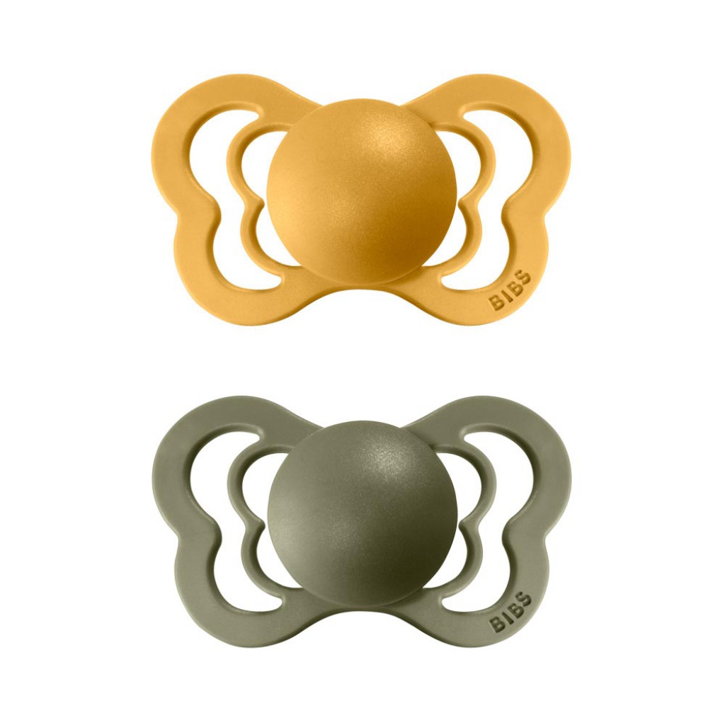 BIBS Couture ortodontické dudlíky ze silikonu 2ks - velikost 2 (Honey Bee / Olive)