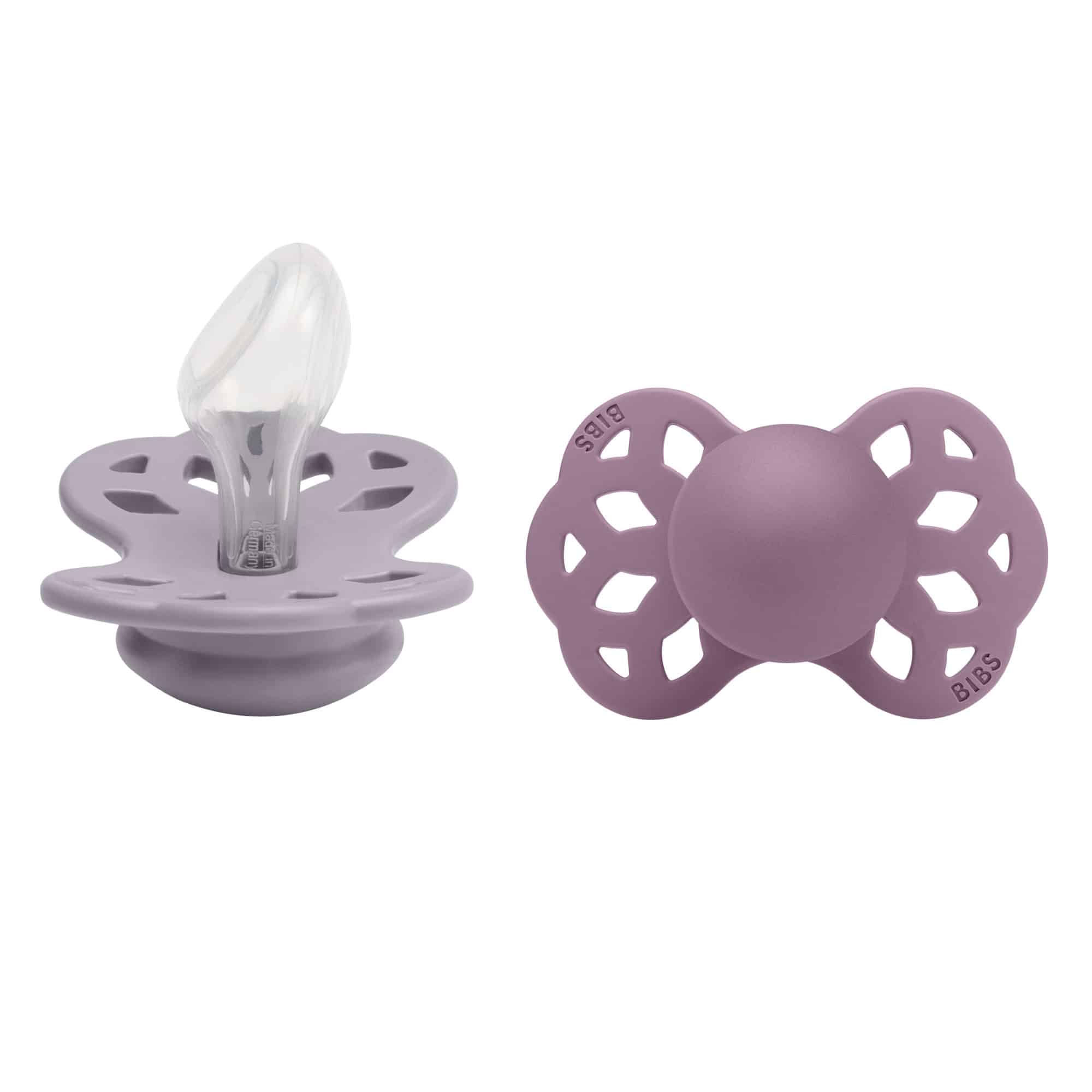 BIBS Infinity dudlíky jsou k dispozici ve 2 velikostech v symetrickém i anatomickém tvaru.